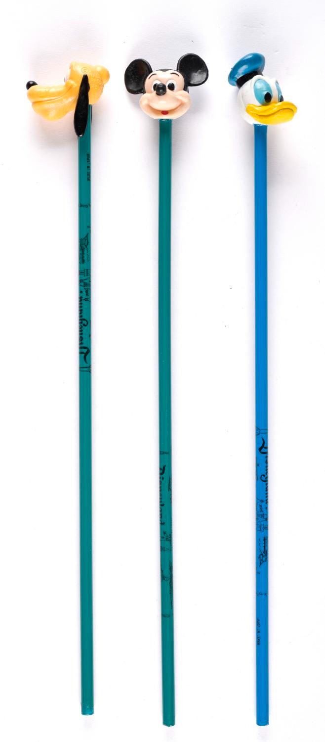 (Disneyland, 1990s) A group of three extra-long character head pencils. Each piece is in fine unused condition.
