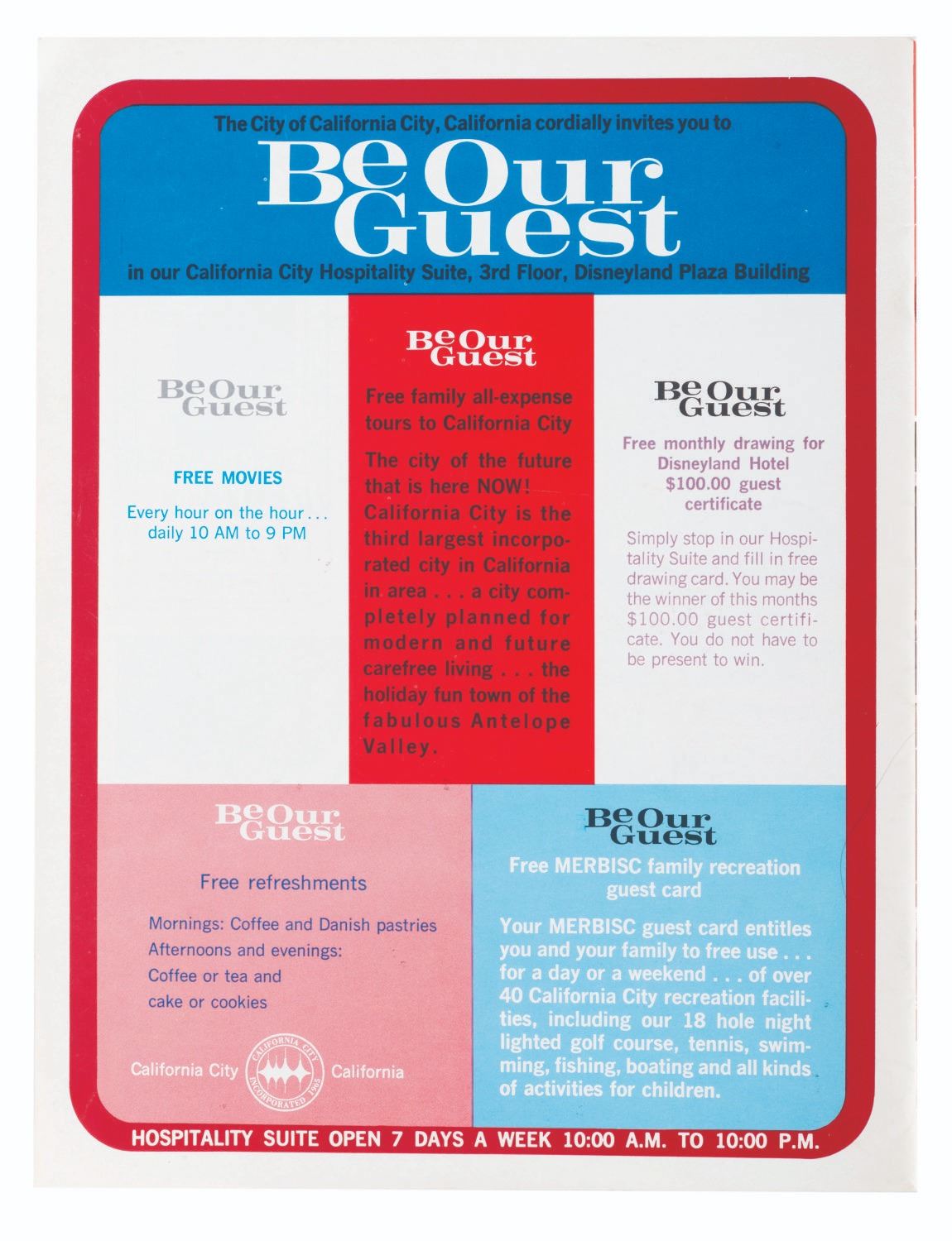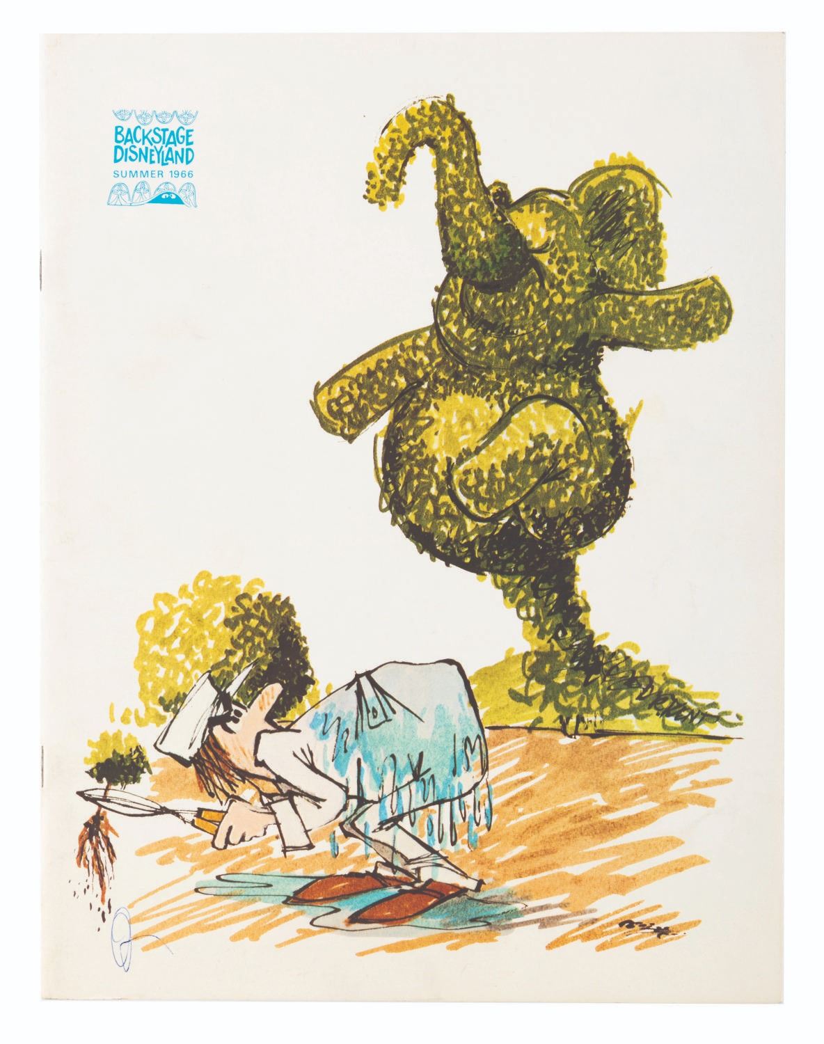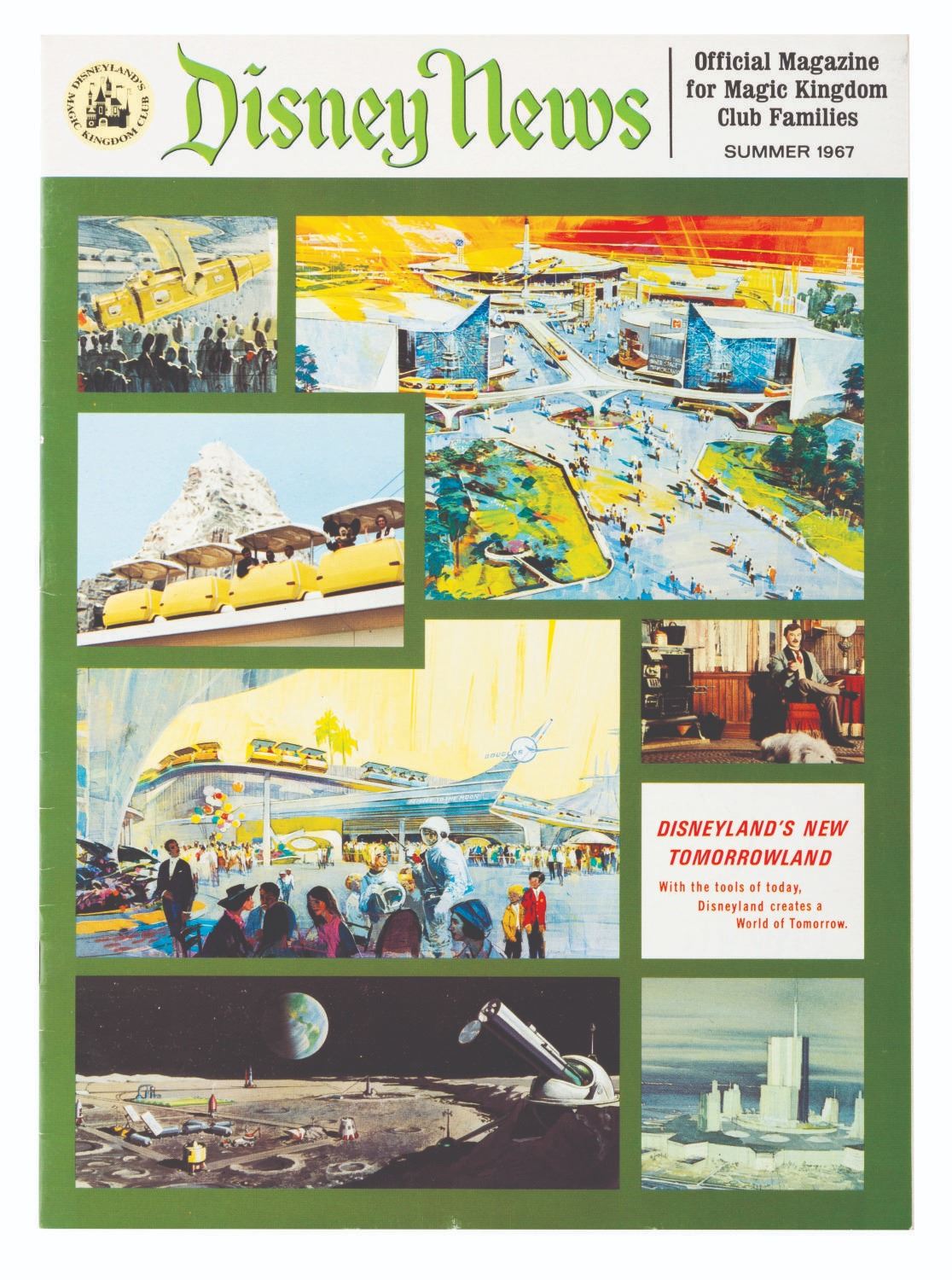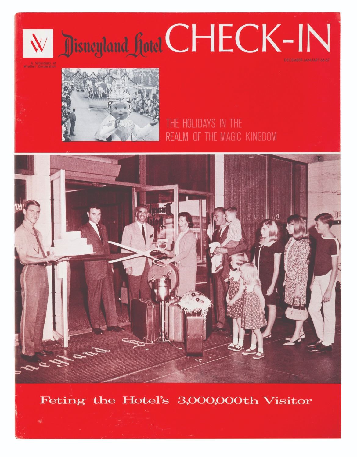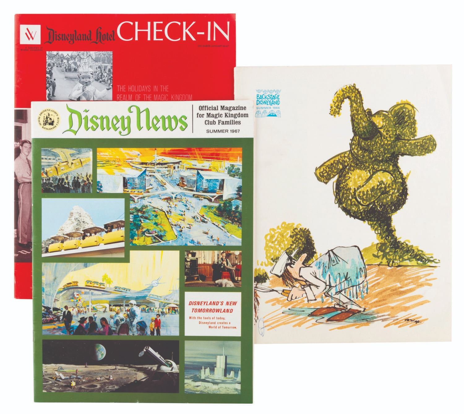 (Disneyland, 1966-67) A collection of three Disneyland magazines including the Summer 1966 issue of Backstage Disneyland, December '66 January '67 Disneyland Hotel Check-In, and the Summer 1967 issue of the Disney News. The issues include articles on 1967's New Tomorrowland, the Disneyland Hotel's Three Millionth Guest, and the horses of Disneyland. Each measuring from 8.5" x 10" to 8.5" x 12", the magazines are in very good condition with typical light wear from handling and age, and a small pen mark on the cover of Backstage Disneyland.