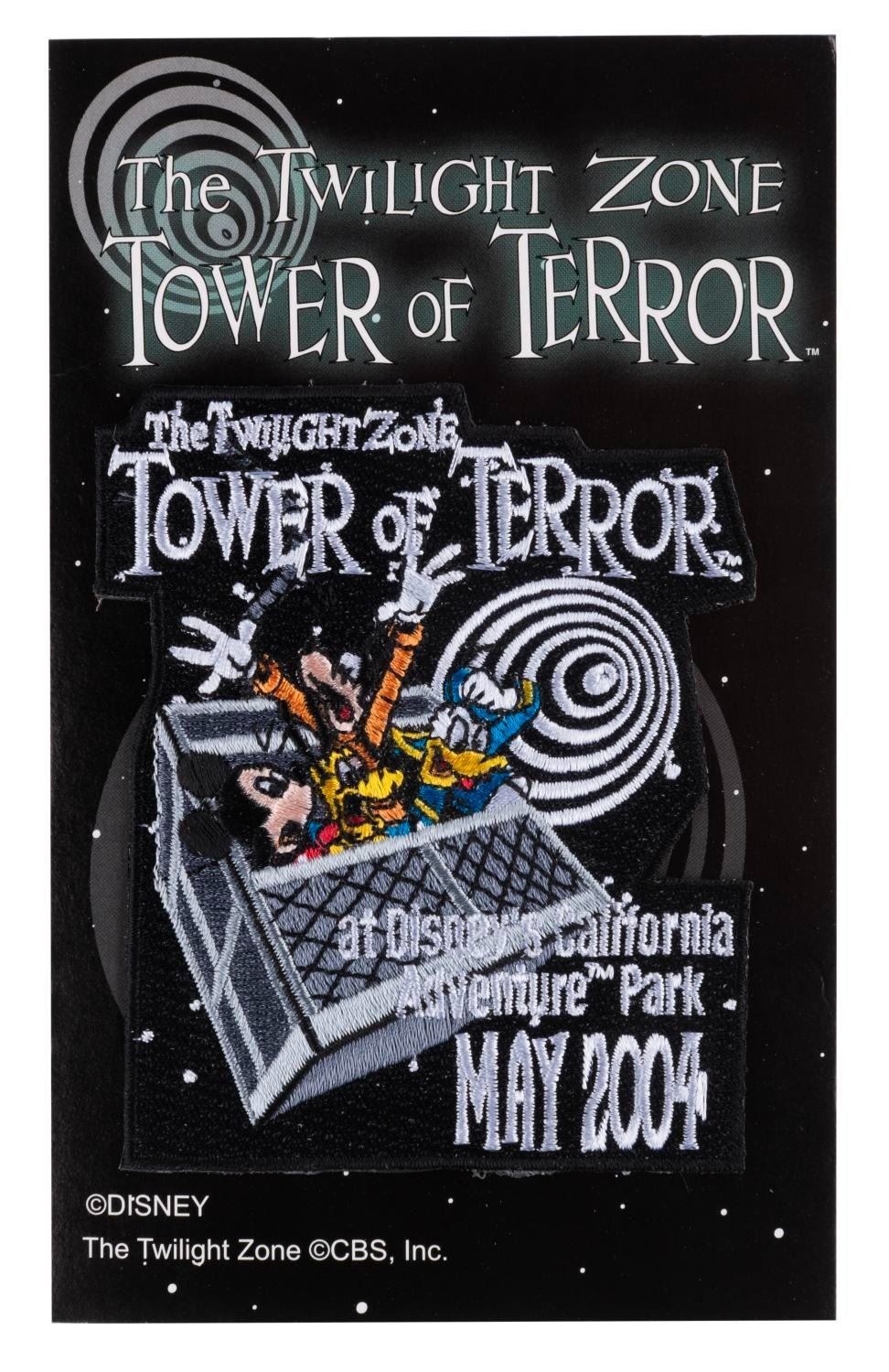 (Disney’s California Adventure, 2004) A patch commemorating the opening of The Twilight Zone Tower of Terror attraction in May 2004. Measuring 3.5” x 4” on its 4.25” x 6.5” original card, the patch is in very good condition with light fraying and wear.