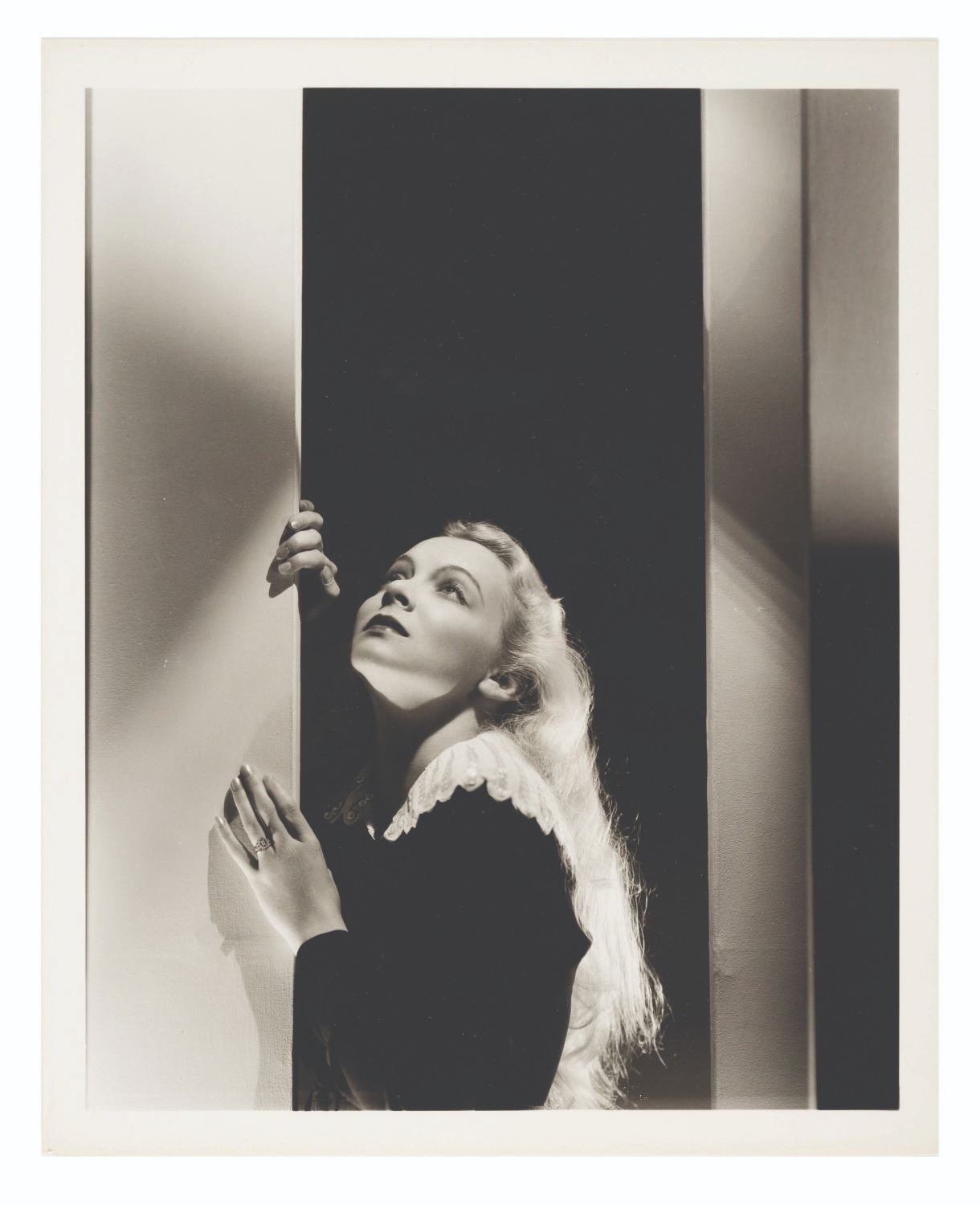 (Bull, 1930s) A portrait print of actress Virginia Bruce by MGM Studio photographer Clarence Sinclair Bull. Measuring 8" x 10", the photo print is in fine condition, with Bull’s original stamp and hand-notation to the reverse.