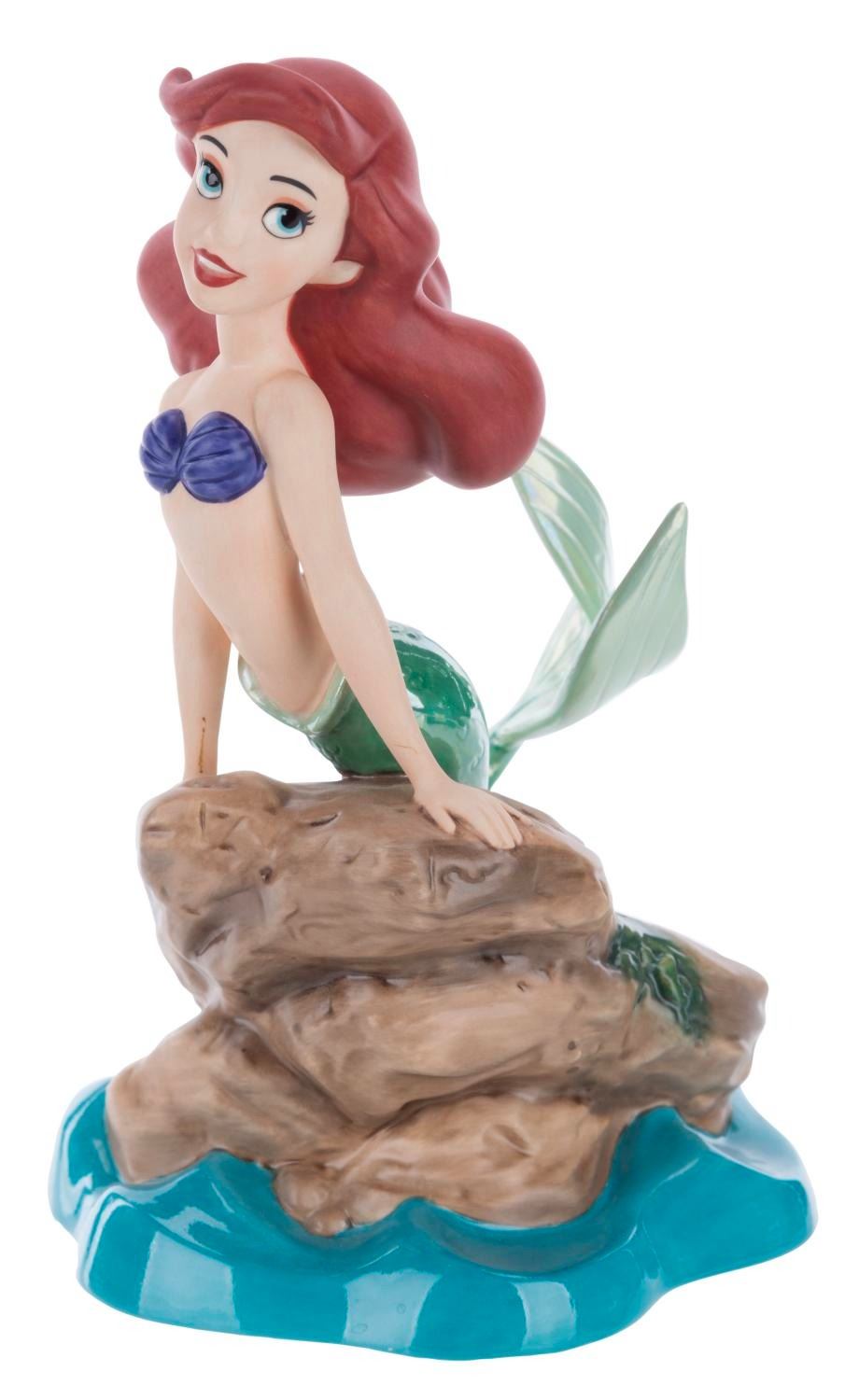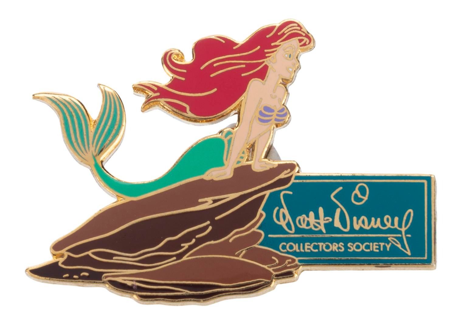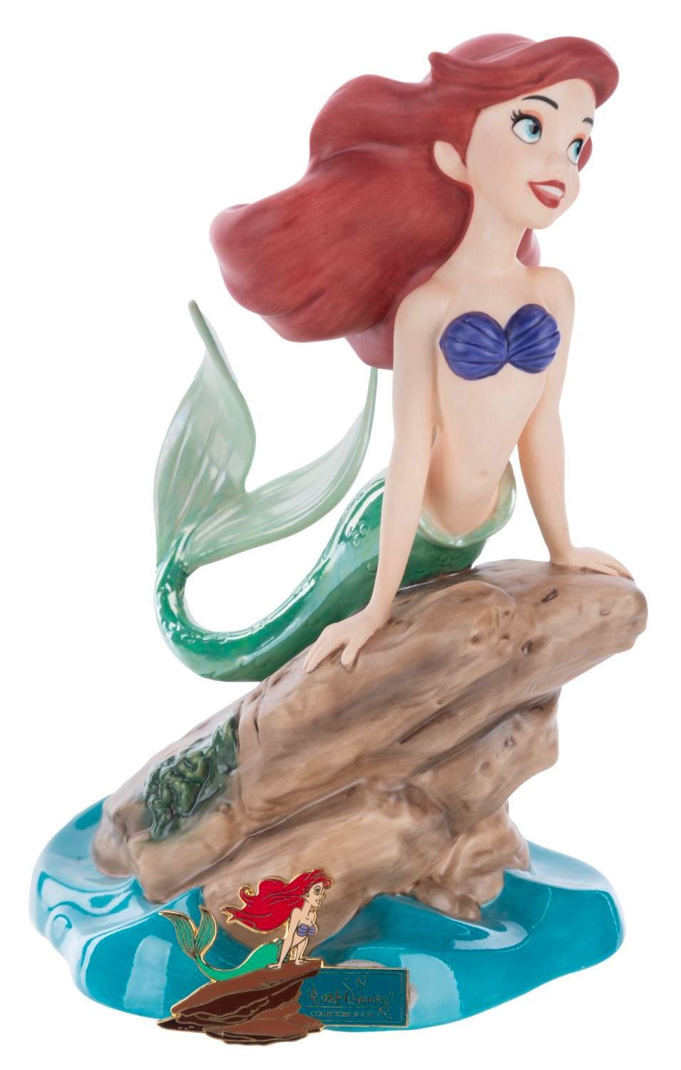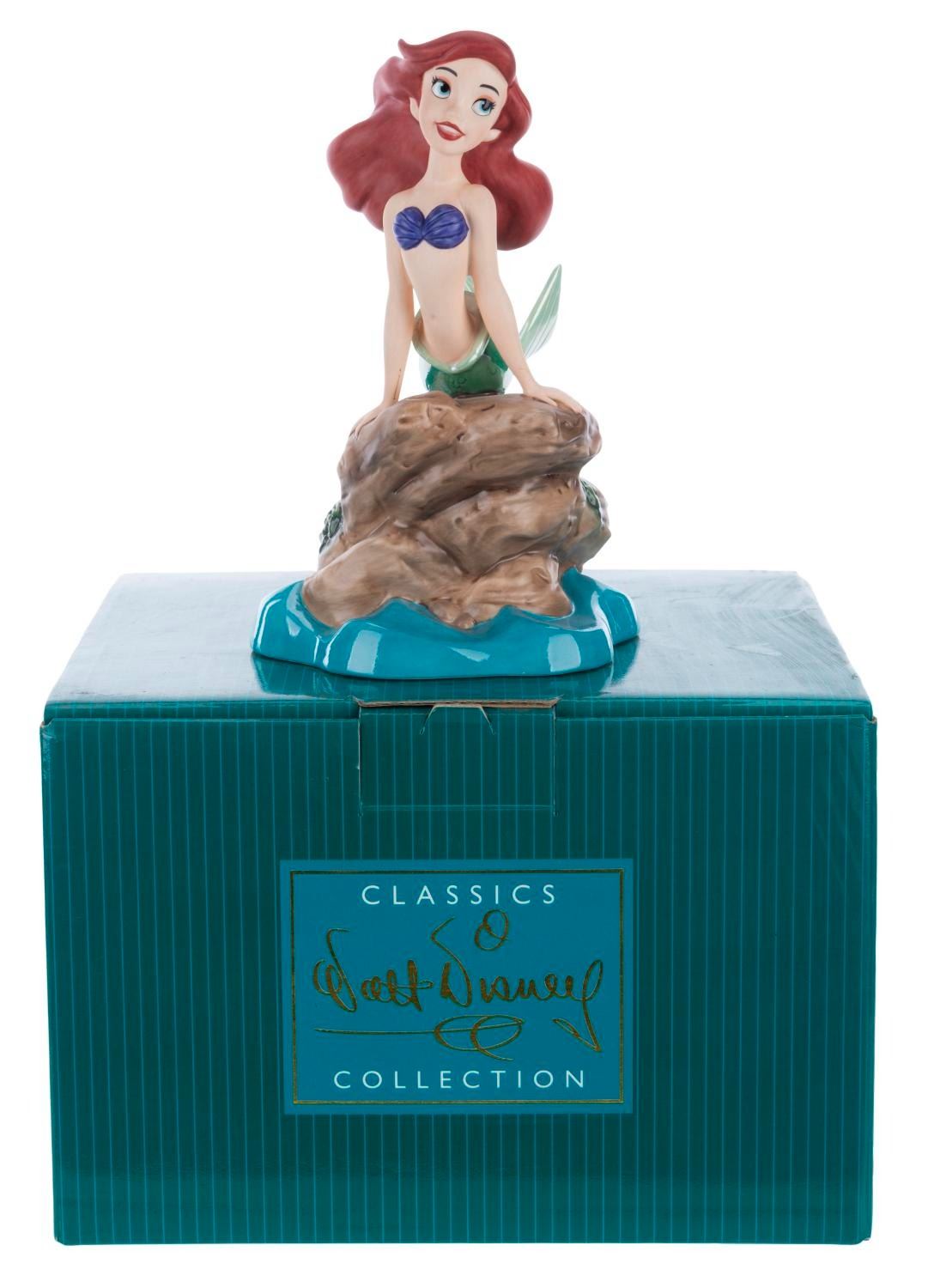 (WDCC, 2006) A Walt Disney Classics Collection Ariel figurine sculpted by Kent Melton and titled "Seaside Serenade." Originally part of the 2006 Walt Disney Collectors Society welcome gift, the box also includes a print of Ariel, a pin, and the original COA. The original packing slip is included, as this sculpture was shipped to Disney Legend Kathryn Beaumont-Levine, the voice actress of Alice in "Alice in Wonderland" and Wendy in "Peter Pan." The sculpture, print, and pin are in fine condition. The packing slip is in very good condition with original folds, and stray printer ink marks. The original box is in fair condition with stains, scratches, and a tear on one side.