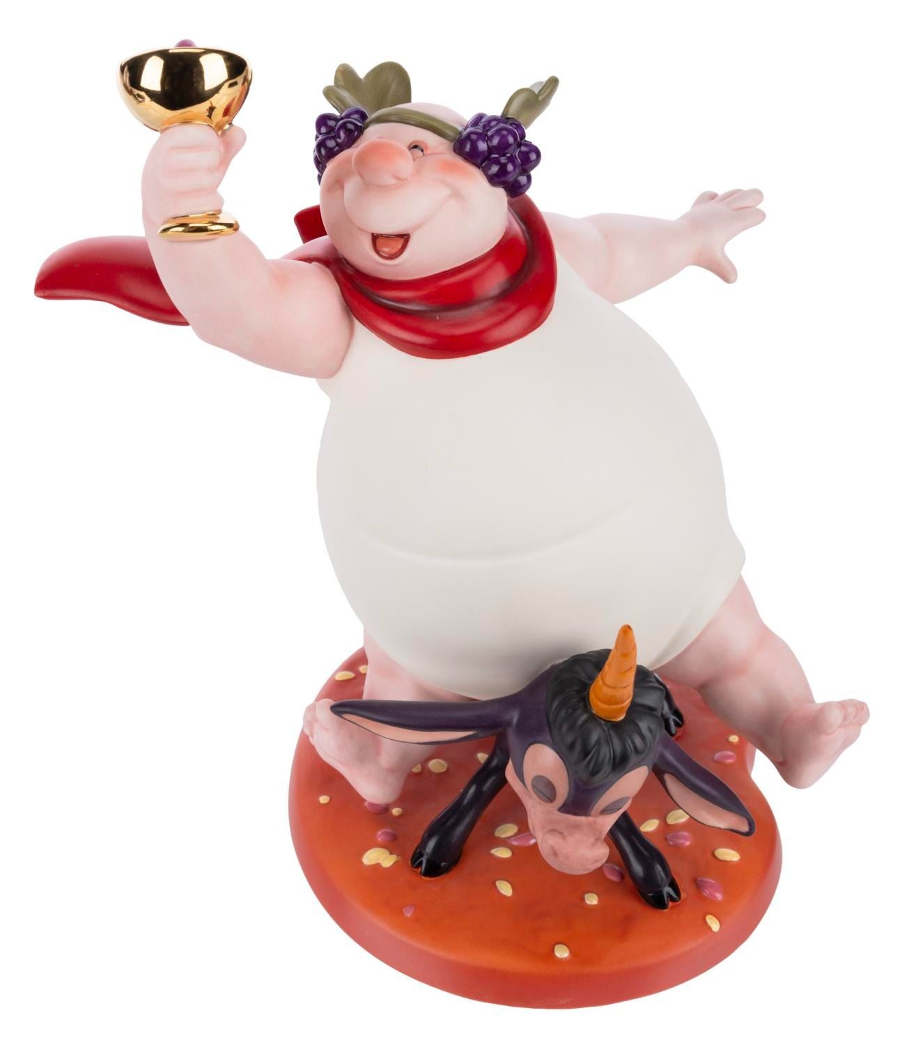 (WDCC, 2008) A Walt Disney Classics Collection “Braying Bacchanalia” figurine of Bacchus and Jacchus from “Fantasia.” The figurine was sculpted by Kent Melton and released in a limited edition of 750. Measuring 8” x 7” x 8” tall with its original box, the figurine is in fine condition.