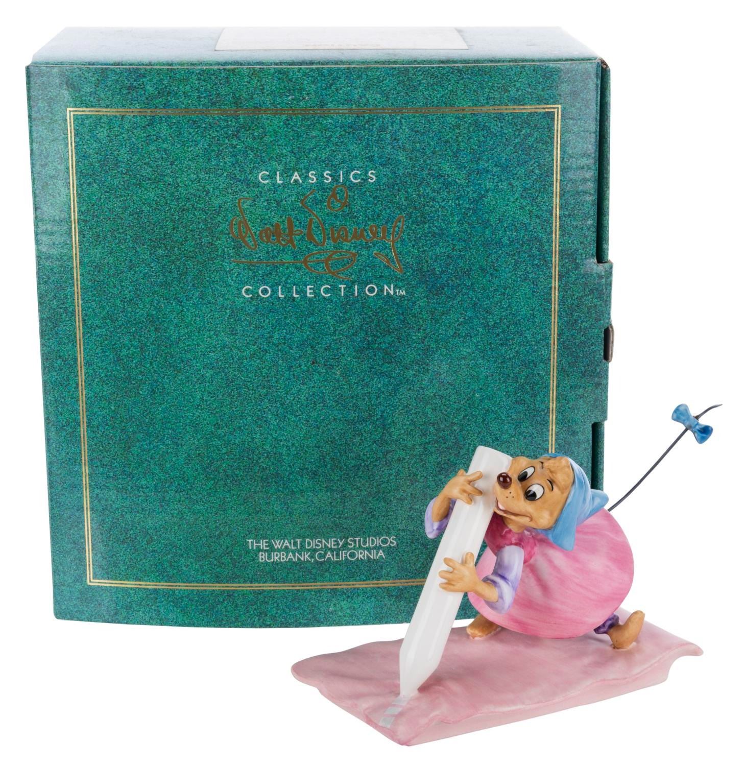 (WDCC, 1993-94) A Walt Disney Classics Collection "No Time for Dilly-Dally!" figurine of the Chalk Mouse (Perla) from "Cinderella." Measuring 2.75" 7" x 3.75" tall, the figurine comes with its original box and is in fine condition.