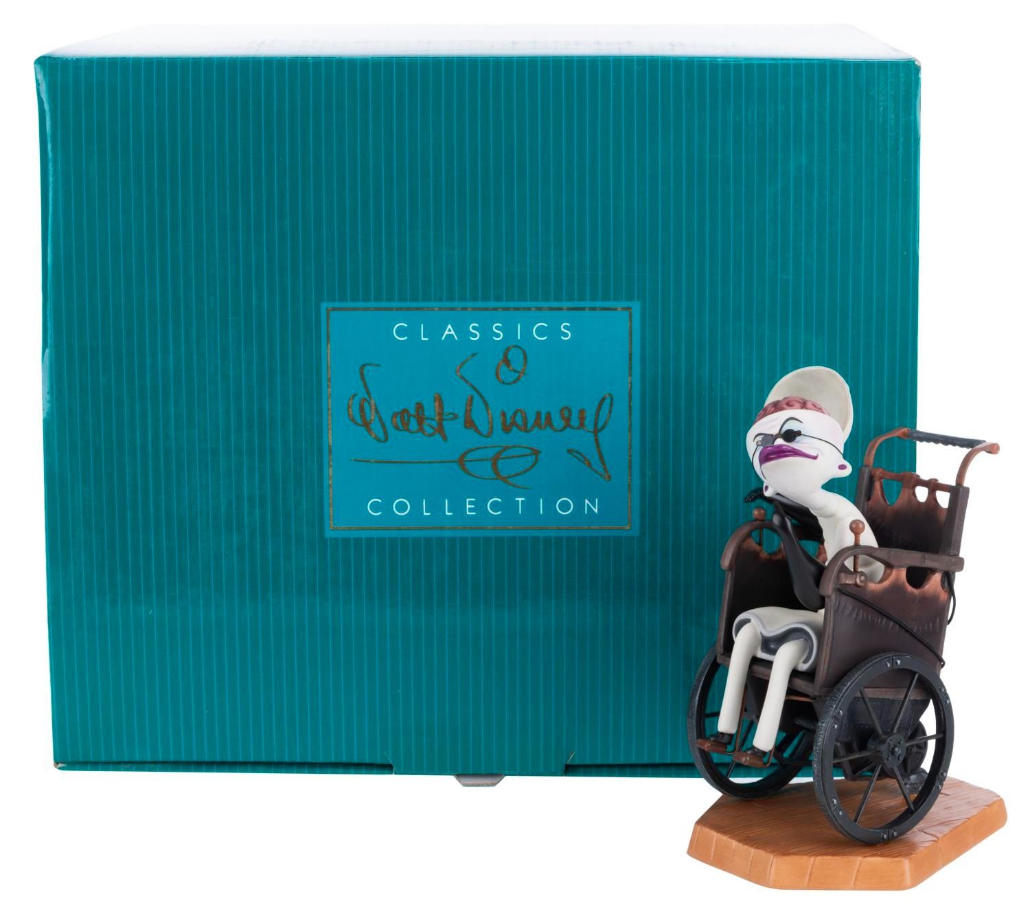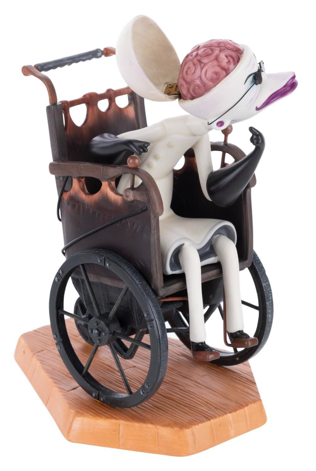 (WDCC, 2002) A Walt Disney Classics Collection “Unhinged” figurine of Dr. Finkelstein from “Nightmare Before Christmas,” sculpted by Kent Melton. The figurine’s skull cap is hinged so the doctor’s brain can be displayed. Standing 6” tall, the figurine is in fine condition, with the original box and COA.