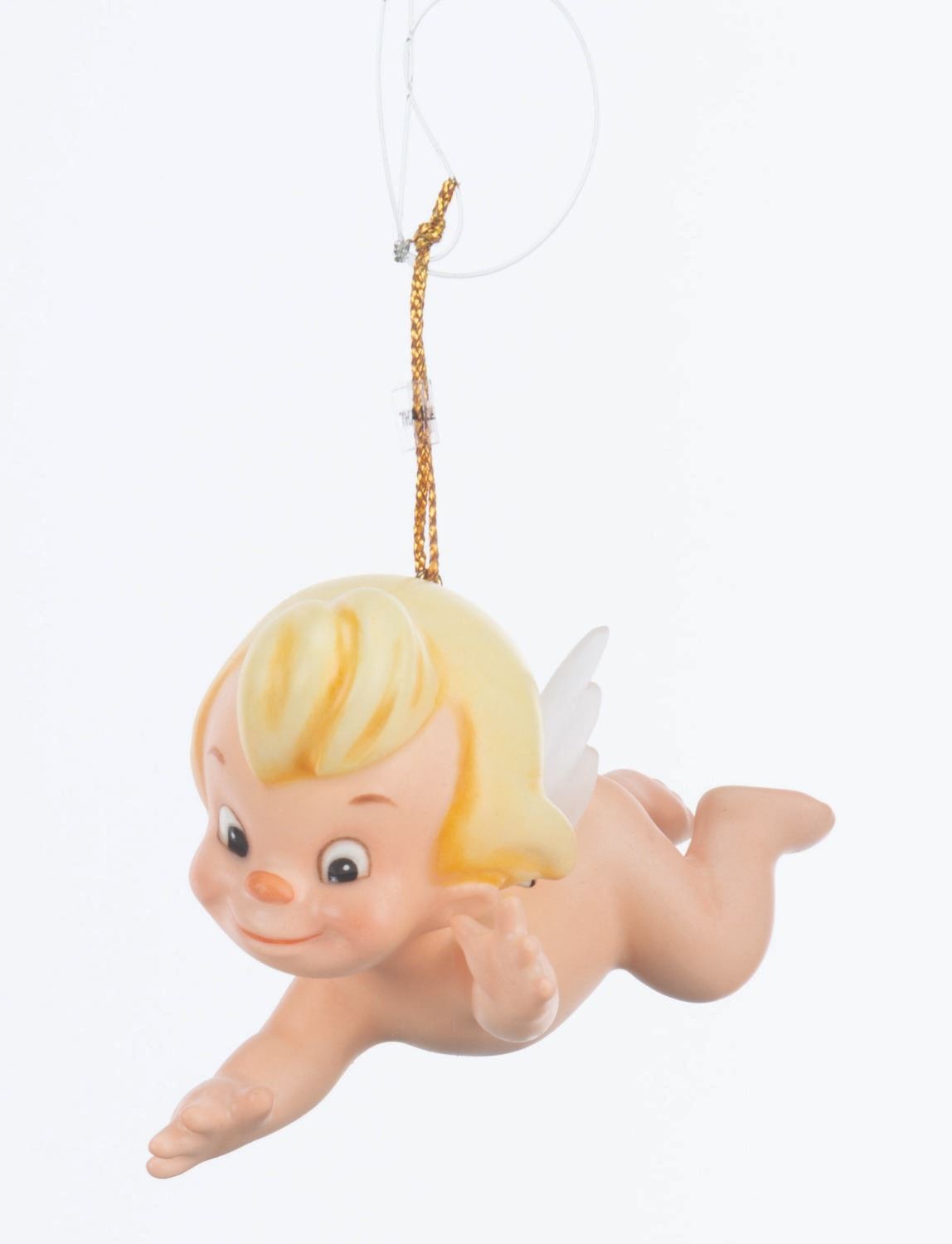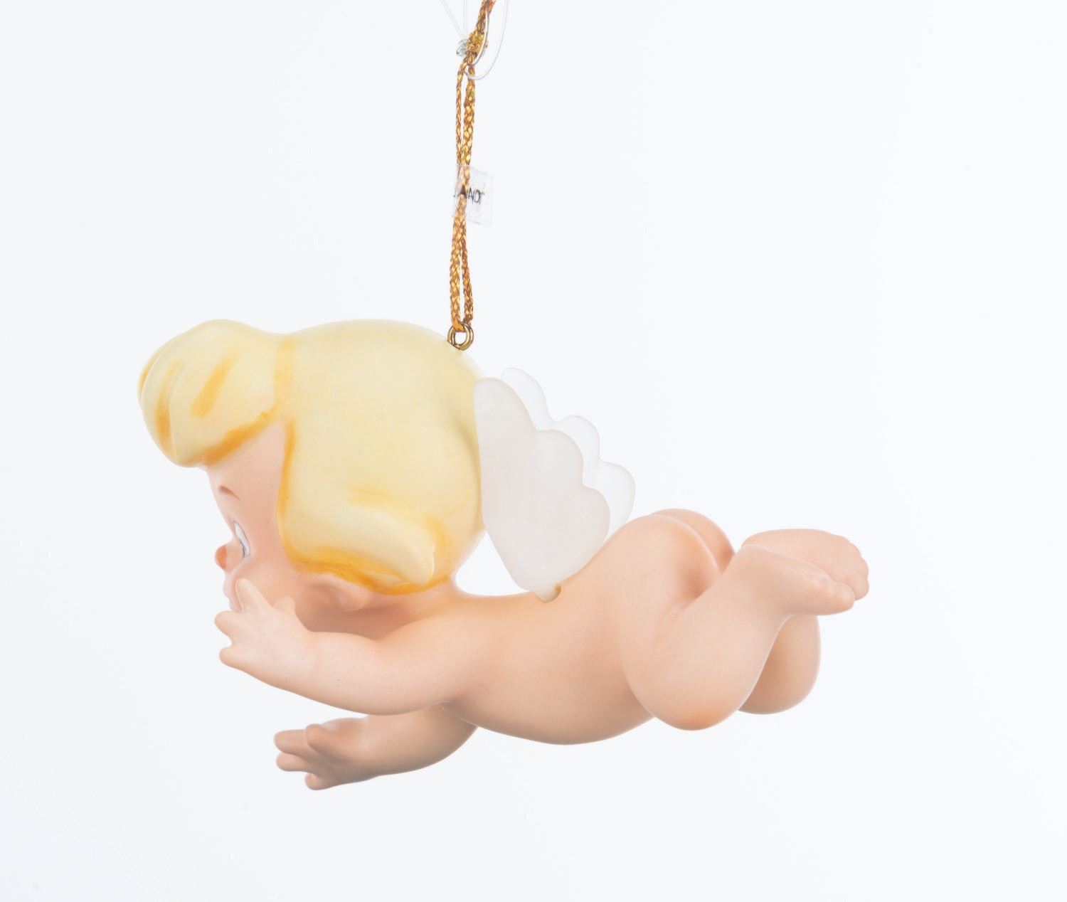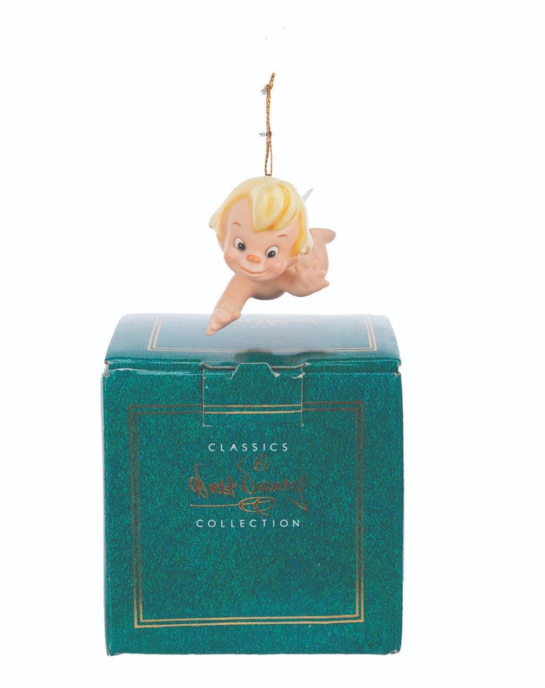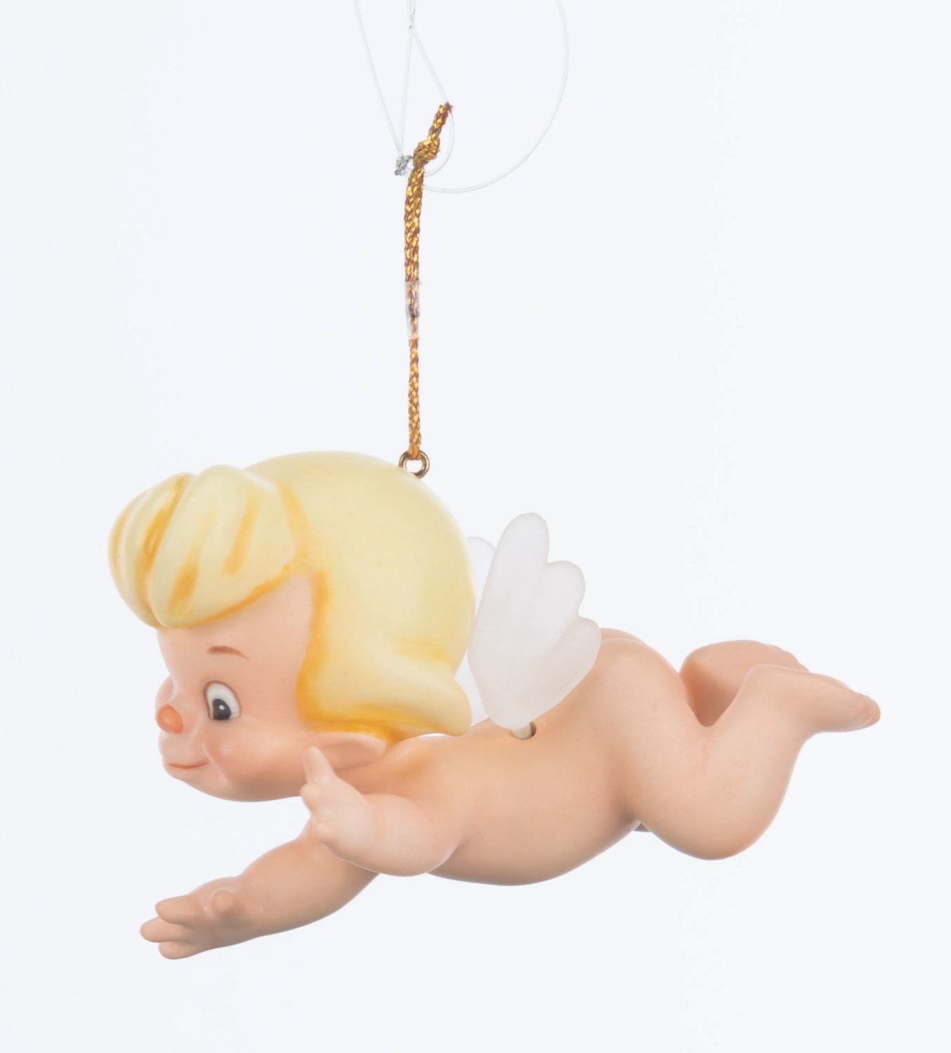 (WDCC, 1994) A Walt Disney Classics Collection figural Cupid ornament titled "Flight of Fancy, " inspired by the Pastoral Symphony segment of "Fantasia. " The ornament was sculpted by Kent Melton and released at the 1994 Ornament Event. Measuring 2.75 " long, the ornament is in fine condition with its original box.
