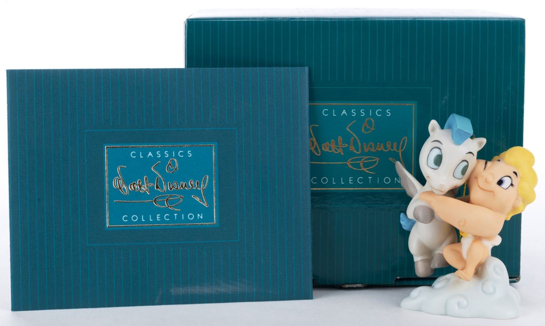 (WDCC, 1997) A Walt Disney Classic Collection figural ornament of baby Hercules and Pegasus titled “A Gift from the Gods." The ornament was sculpted by Gwen Dutcher and released as the Fall Ornament Event in 1997. Measuring 2.75" x 1.75" and 3.5" tall, the ornament is in fine condition and comes with the original 6.5" x 5.25" x 4.25" box and COA.