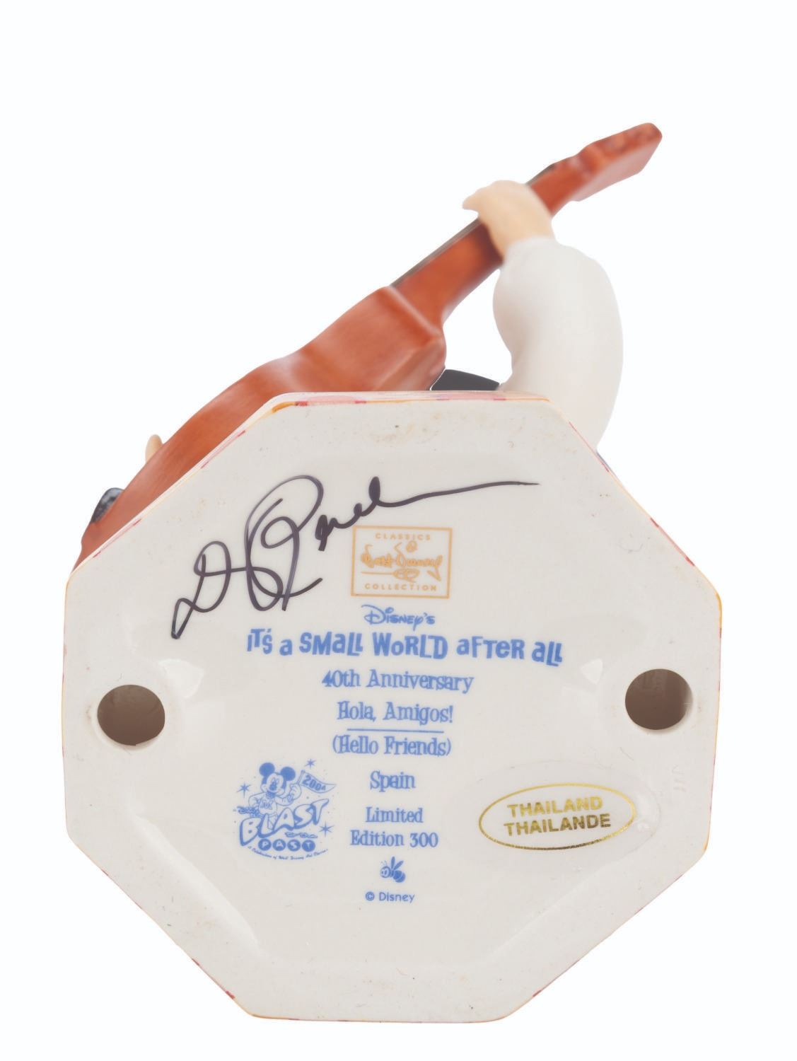 (WDCC, 2004) A Walt Disney Classic Collection It’s a Small World figurine set titled "Hola, Amigos! " and "Aldea, " representing the Spain section of the attraction. The set comes with the original COA, hand-signed by legendary Imagineer Rolly Crump, who designed the attraction’s exterior. Measuring 4 " x 3.25 " and 6 " tall and 1.25 " x 5 " and 7 " tall, the figurines are in fine condition and come with the original box.