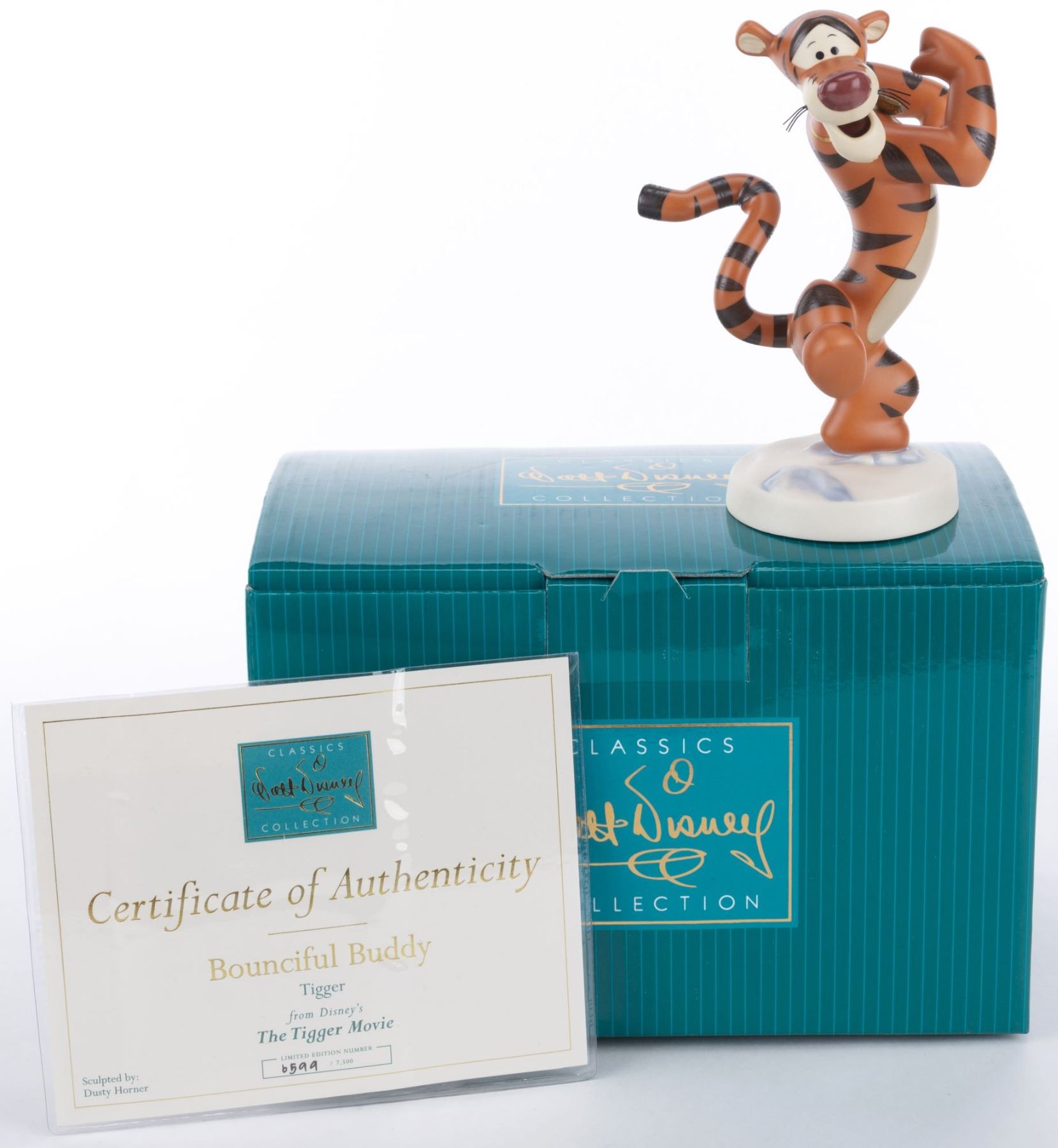 (WDCC, 2003) A Walt Disney Classics Collection figurine of Tigger from the “Tigger Movie." Titled “Bounciful Buddy," the figurine was sculpted by Dusty Horner and released in an edition of 7500 for the Spring Event. Measuring 3.5" x 3" and 5.25" tall, the figurine is in fine condition and comes with the original 8" x 5.25" x 5.5" box.