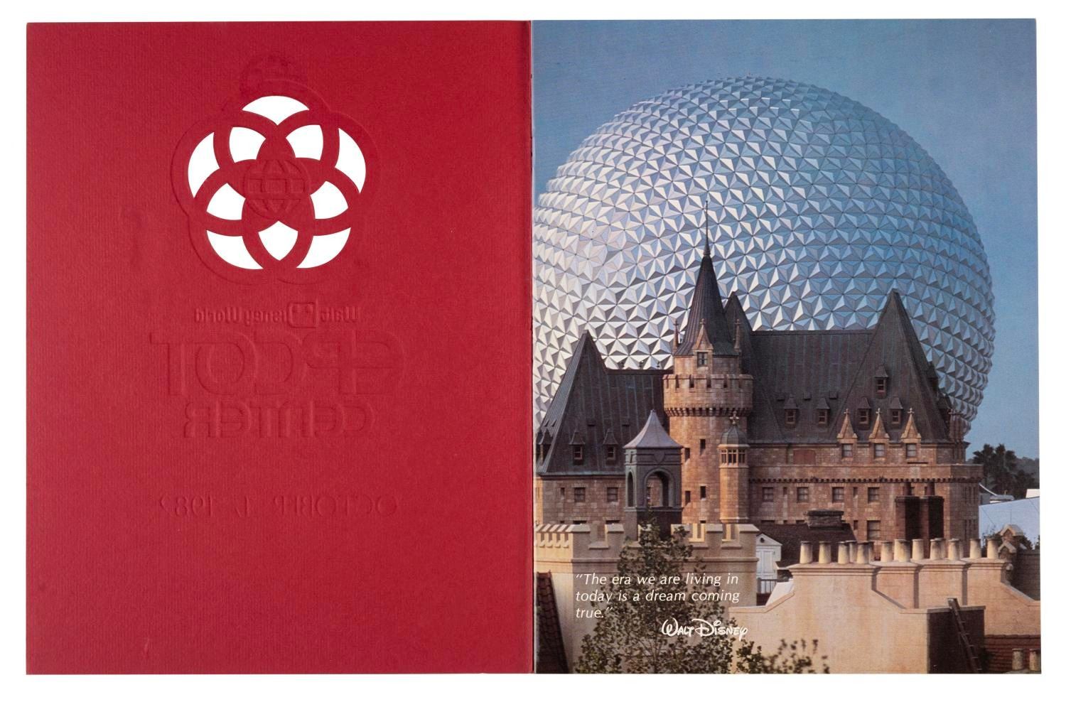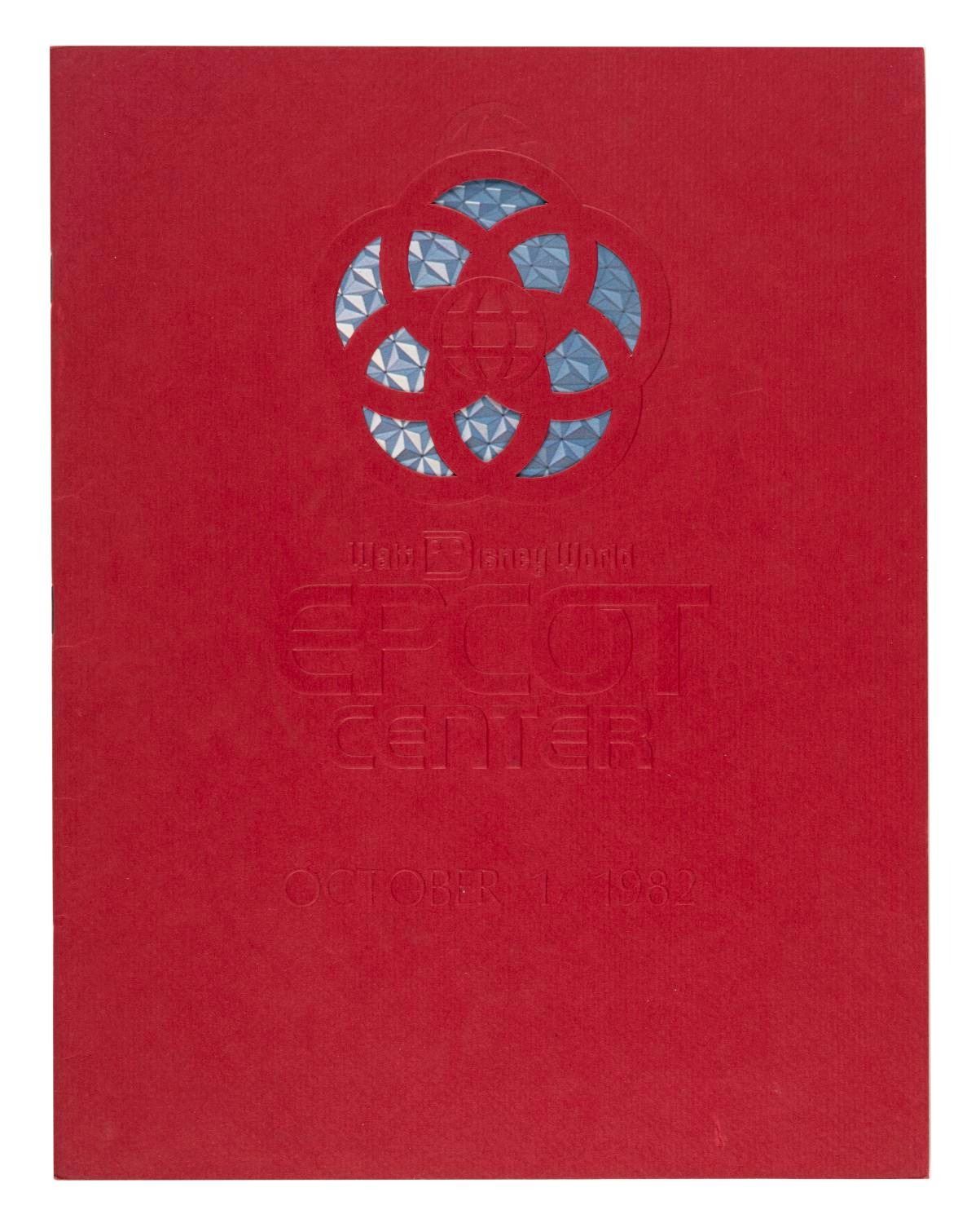 (EPCOT, 1982) A guidebook given to WED Imagineers in commemoration of EPCOT Center's opening day on October 1, 1982. The 24-page pictorial features Future World (with its Communicore and Lands) and World Showcase presented through full-color photographs. Measuring 8.5"x11", the guidebook is in very good condition with light wear to the cover.
