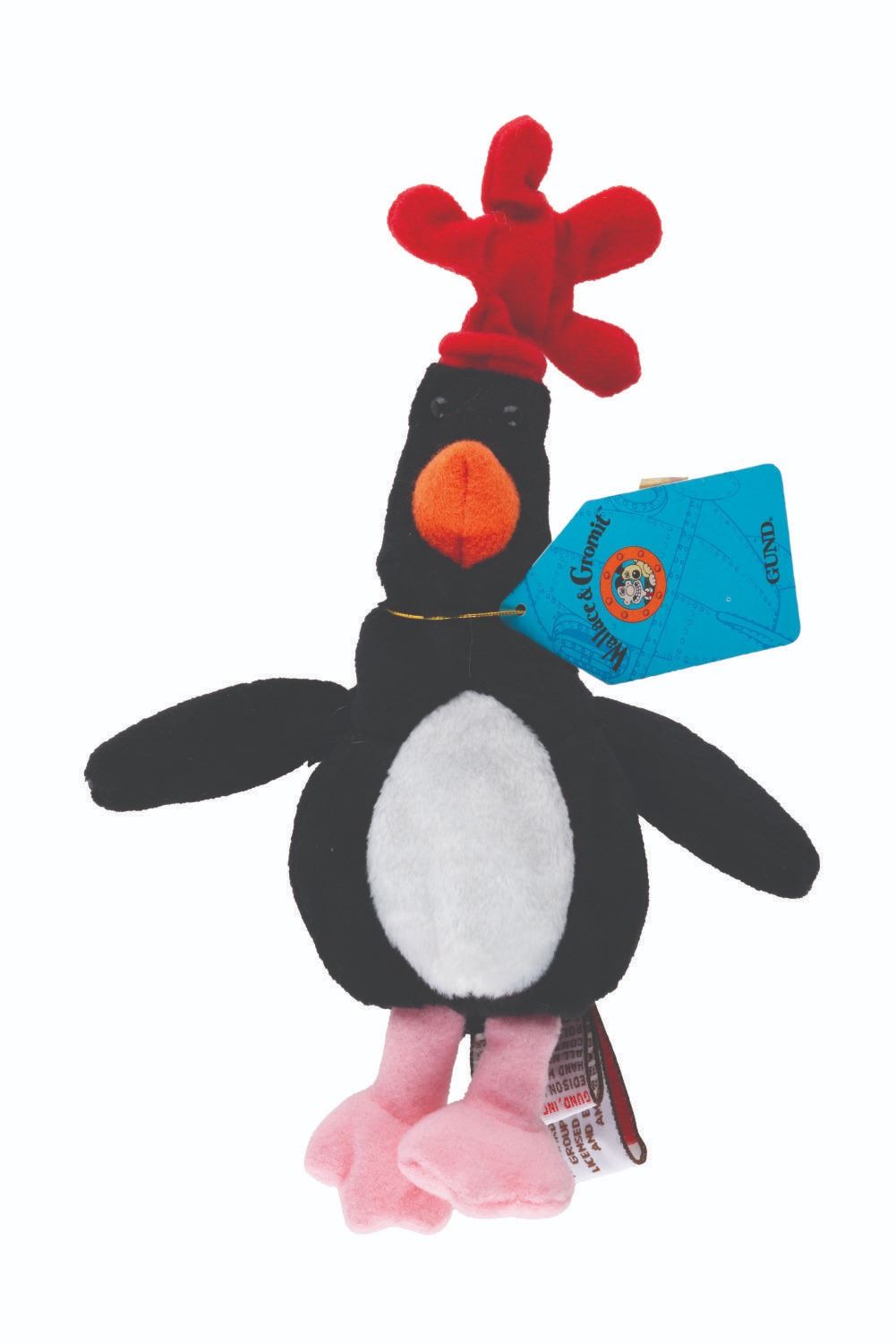 (Gund, 1990s) A bean bag plush of Feathers McGraw from the Academy Award-winning Wallace and Gromit short "The Wrong Trousers. " Measuring 7.5 " tall, the bean bag maintains its original tag and is in very good condition with light wear.