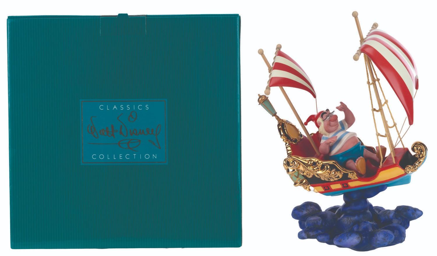 (Disney, 2003) A Walt Disney Classics Collection “Mr. Smee’s Flight” sculpture, released in honor of the film’s 50th anniversary and inspired by Peter Pan’s Flight. Sculpted by Patrick Romandy-Simmons, this sculpture was released in a limited edition and is numbered 17/500. Measuring 7 x 8.5” x 11 ½” tall with its 12.75” x 14.25” x 14.5” tall original box, the sculpture is in fine condition.