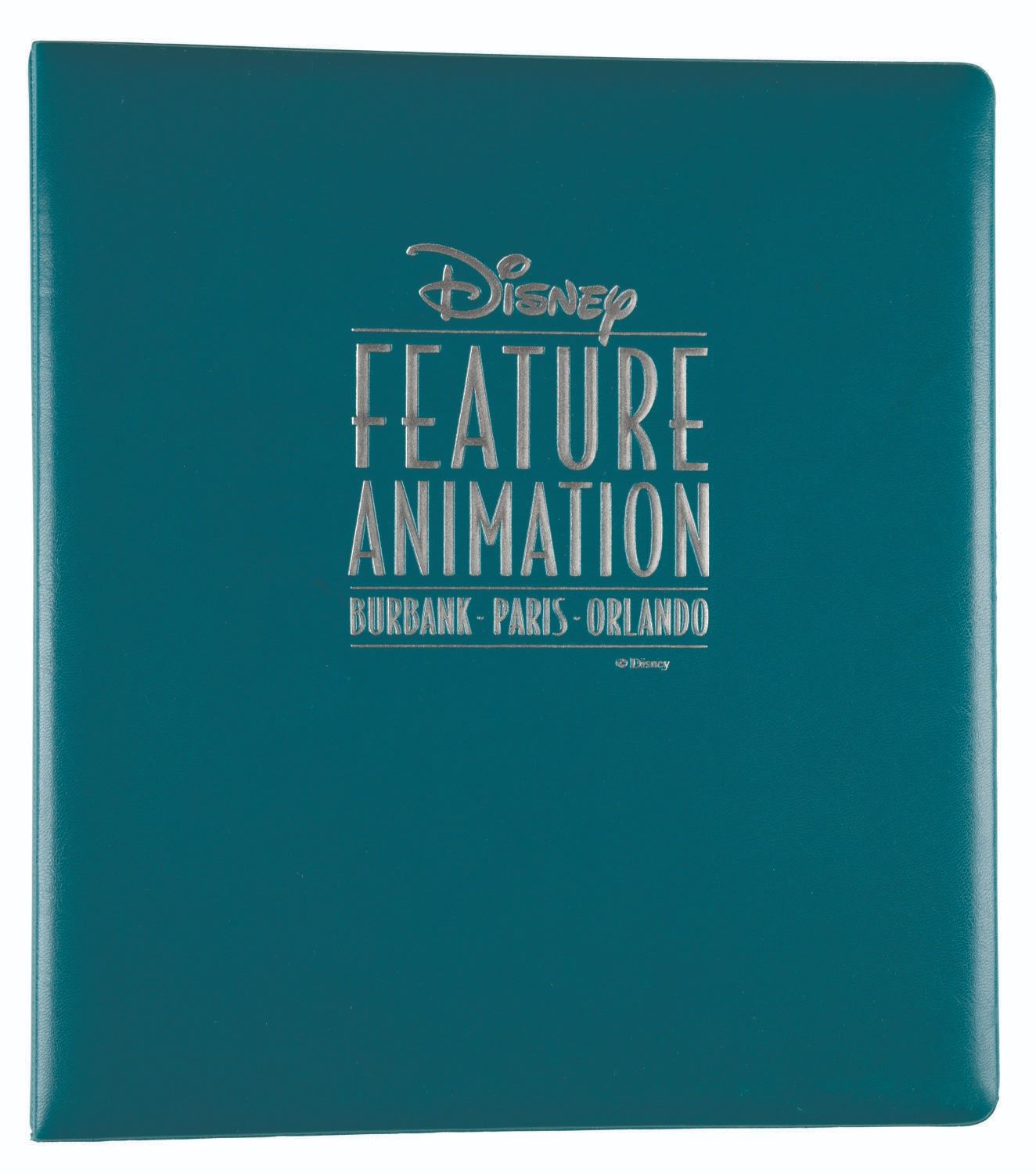 (Disney, 1990s) A three-ring binder used to present materials for Walt Disney Feature Animation in Burbank, Paris, and Orlando. Measuring 10.5"x11.5"x1.75", the binder is in very good condition exhibiting scuffs, scratches, and wear from handling and age.