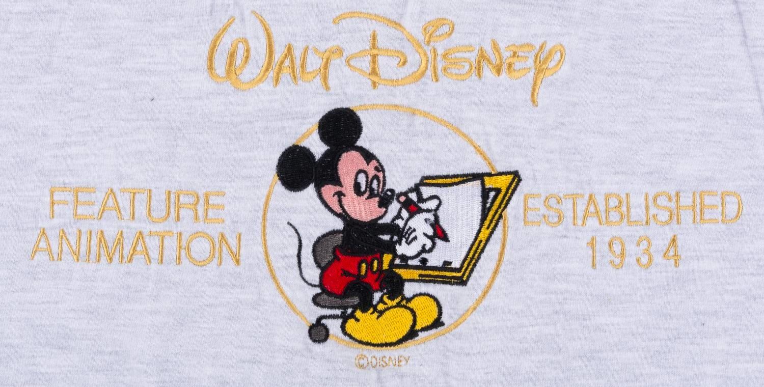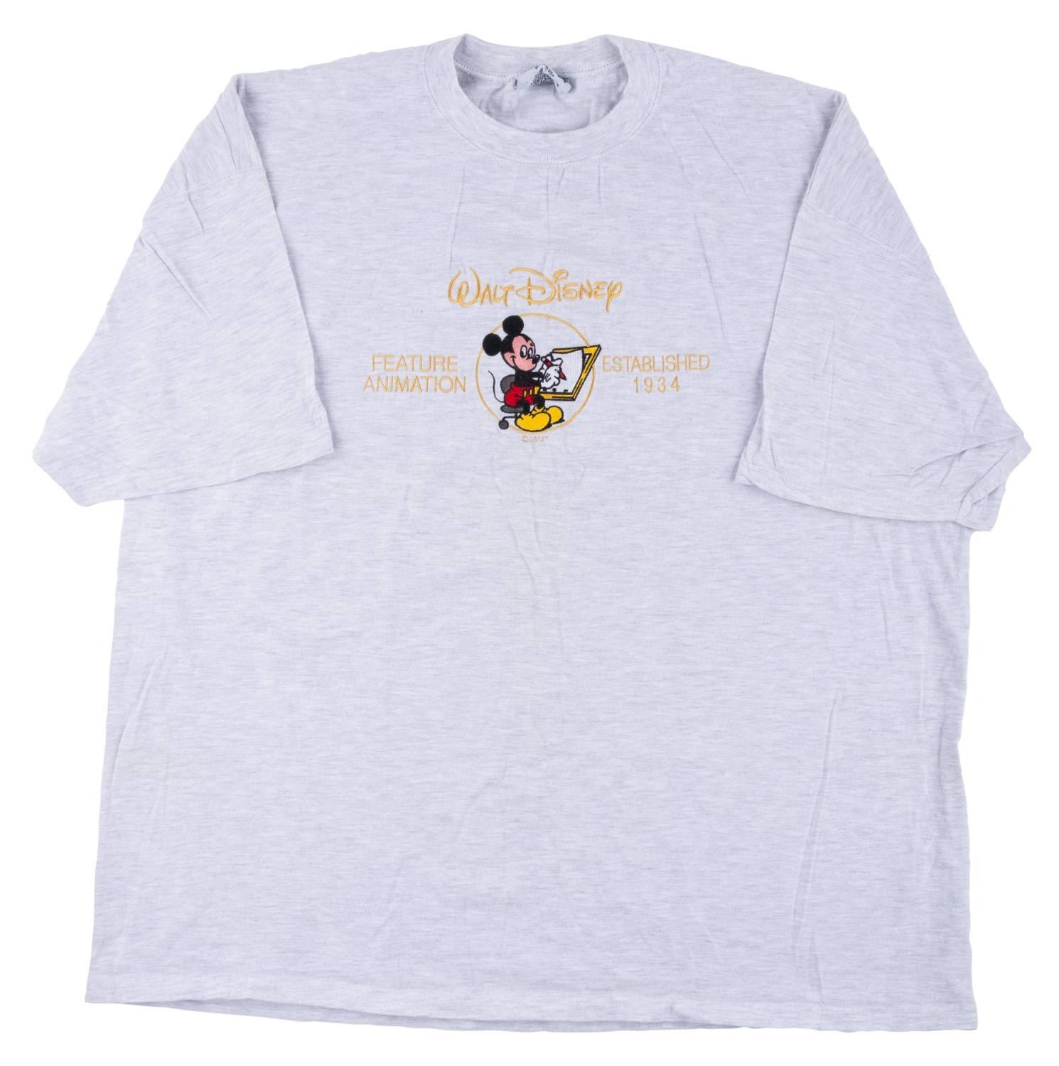 (Disney, 1990s) A Walt Disney Feature Animation T-shirt, with an embroidered logo of Mickey at an animator’s desk. Labeled a size 2XL, the shirt is in fine as-new condition.