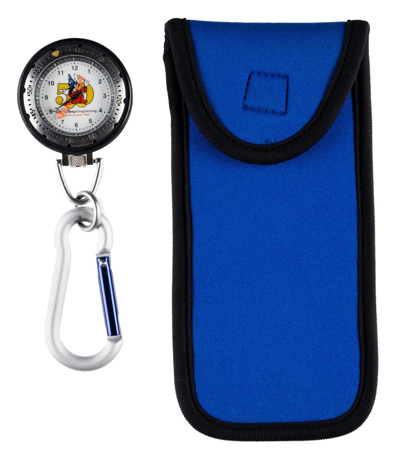 (WDI, 2002) A Walt Disney Imagineering 50th Anniversary Fob Watch featuring a Sorcerer's Apprentice Mickey Mouse. This watch was released limitedly to Walt Disney Imagineers. Measuring 1.75" in diameter, this timepiece displays a fine condition. The function of this watch has not been tested.