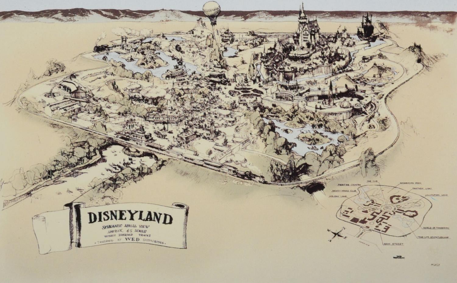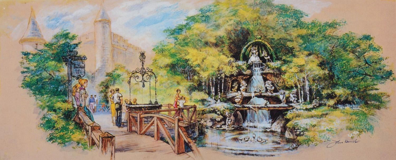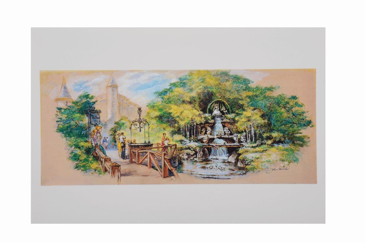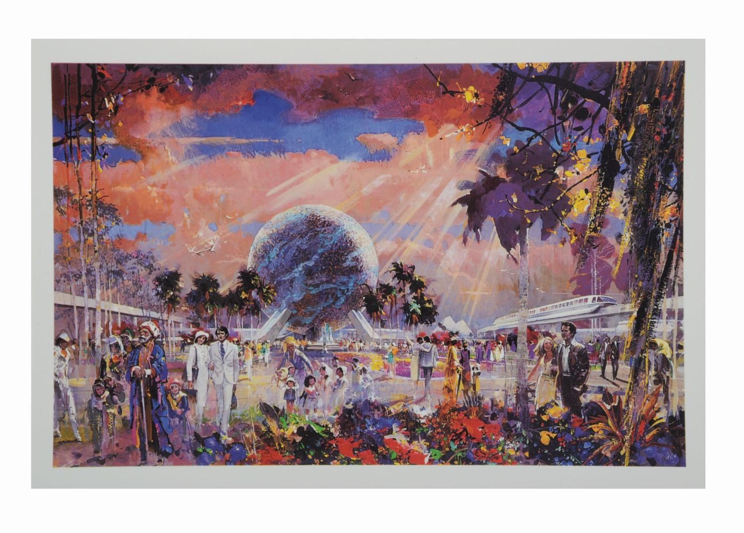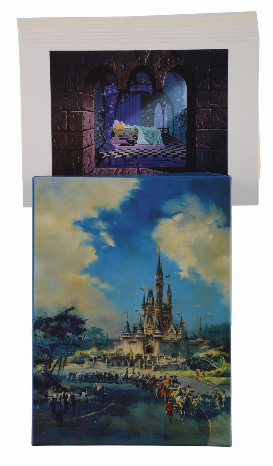 (Walt Disney Gallery, 1994) A set of nine notecards and envelopes featuring concept artwork from Walt Disney Imagineering. Measuring 4.75" x 7" in their original 5. 75" x 7.75" box, the cards are in fine condition, while the box is in very good condition with edge wear, creasing, and a split edge.