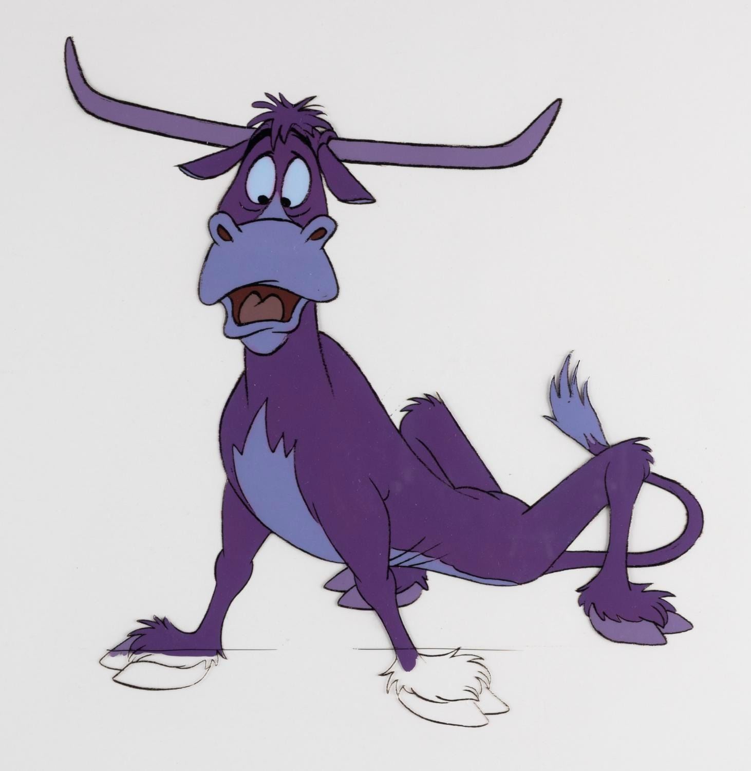 (Disney, 1959) An original production cel of a longhorn bull from the Walt Disney Presents TV show episode “Highway to Trouble. With a character image size of 8” x 7.5” the 12.5” x 16” cel is in fine condition.