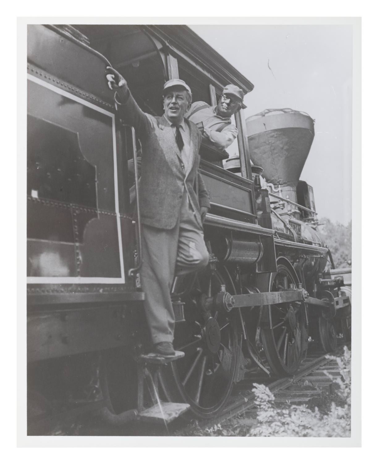 (Disney, 1956) An original print of Walt Disney at the filming location of “The Great Locomotive Chase” starring Fess Parker. Measuring 8” x 10”, the photo print is in very good condition.