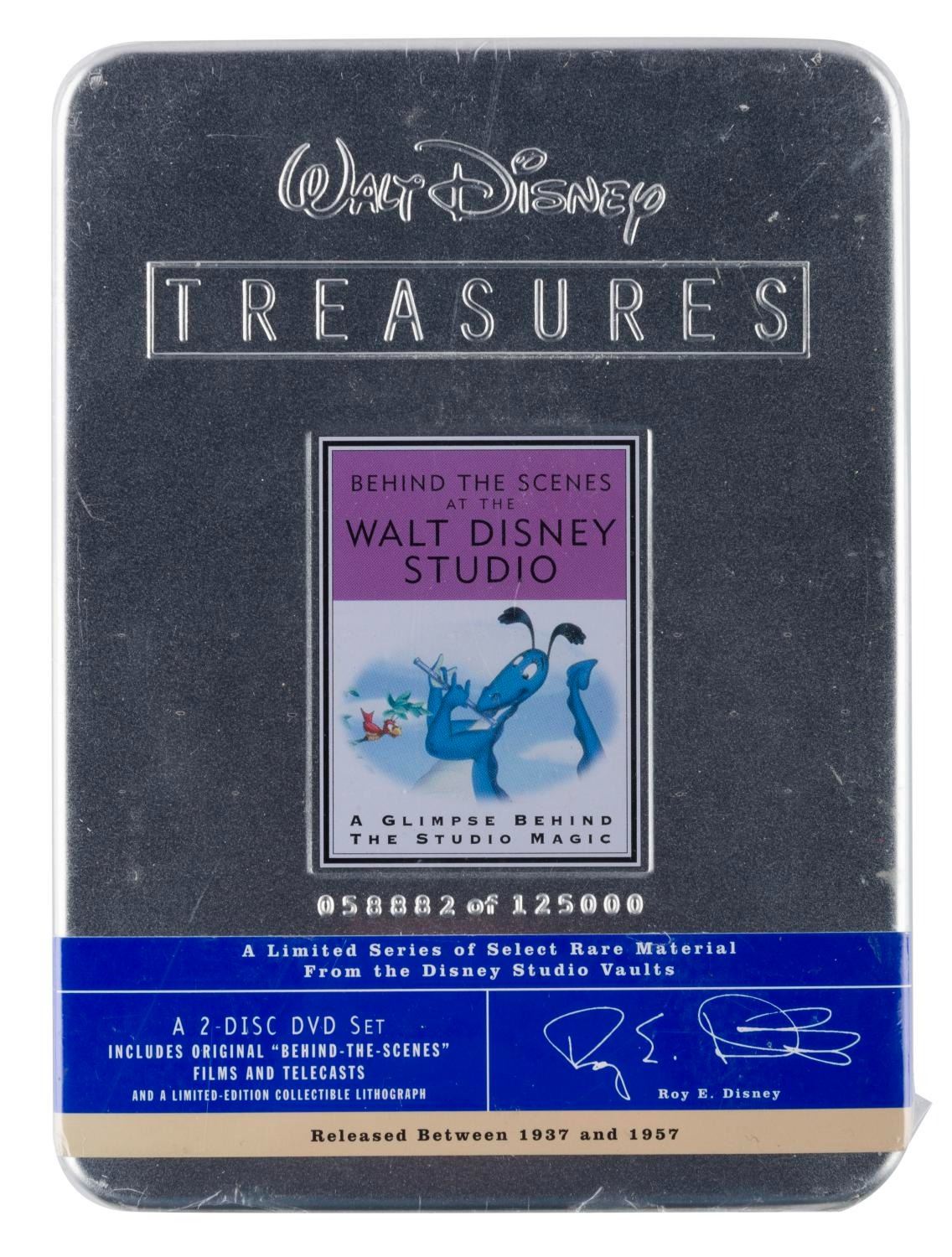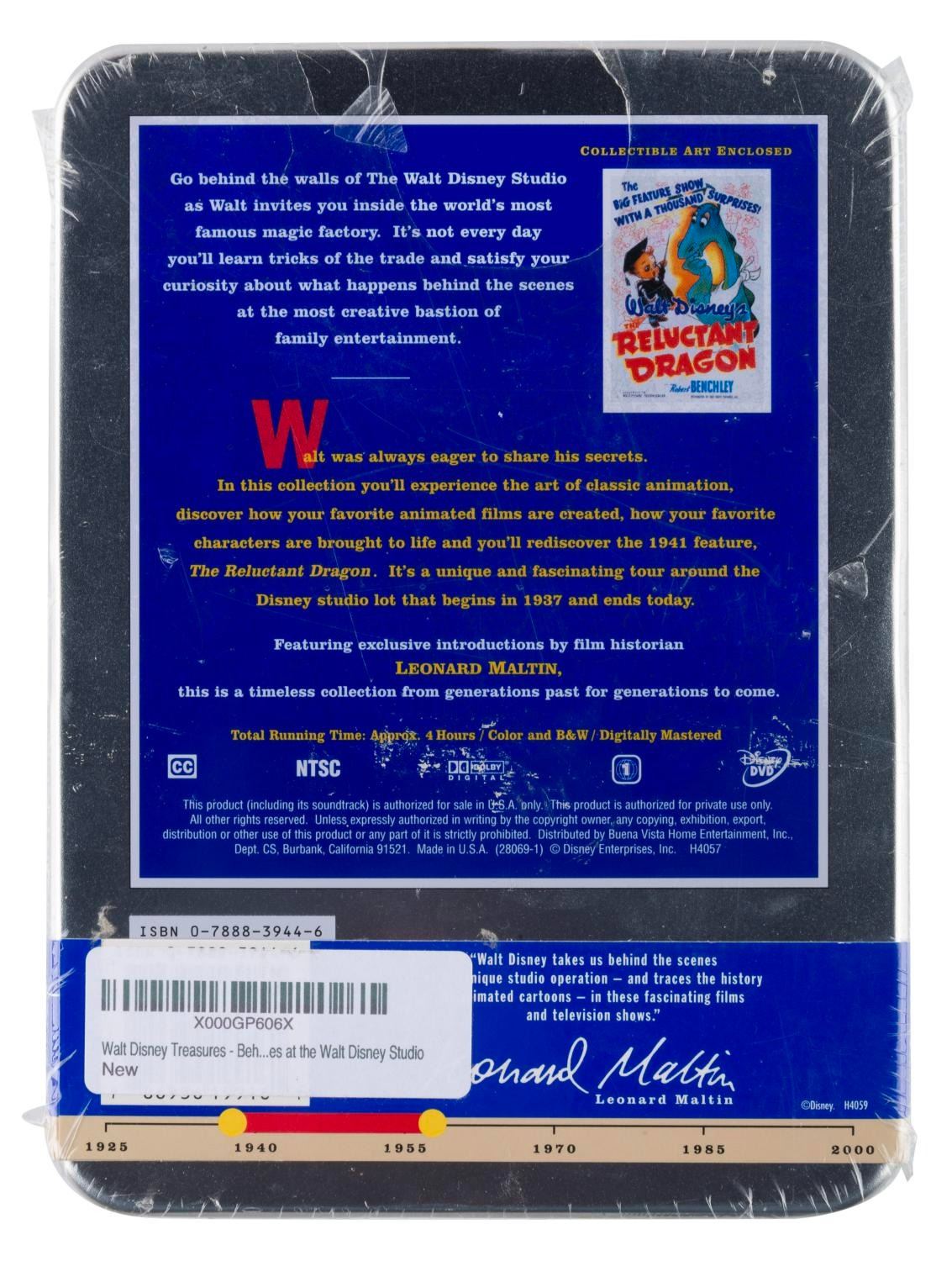(Disney, 2008) A Walt Disney Treasures two-DVD set “Behind the Scenes at the Walt Disney Studio.” The set includes the 1941 “The Reluctant Dragon,” which features scenes shot on the then-new Disney lot in Burbank. The set is in presumed fine, sealed condition with light dents to the top corners of the case, with a spot of tarnish and small rips in the shrink wrap.