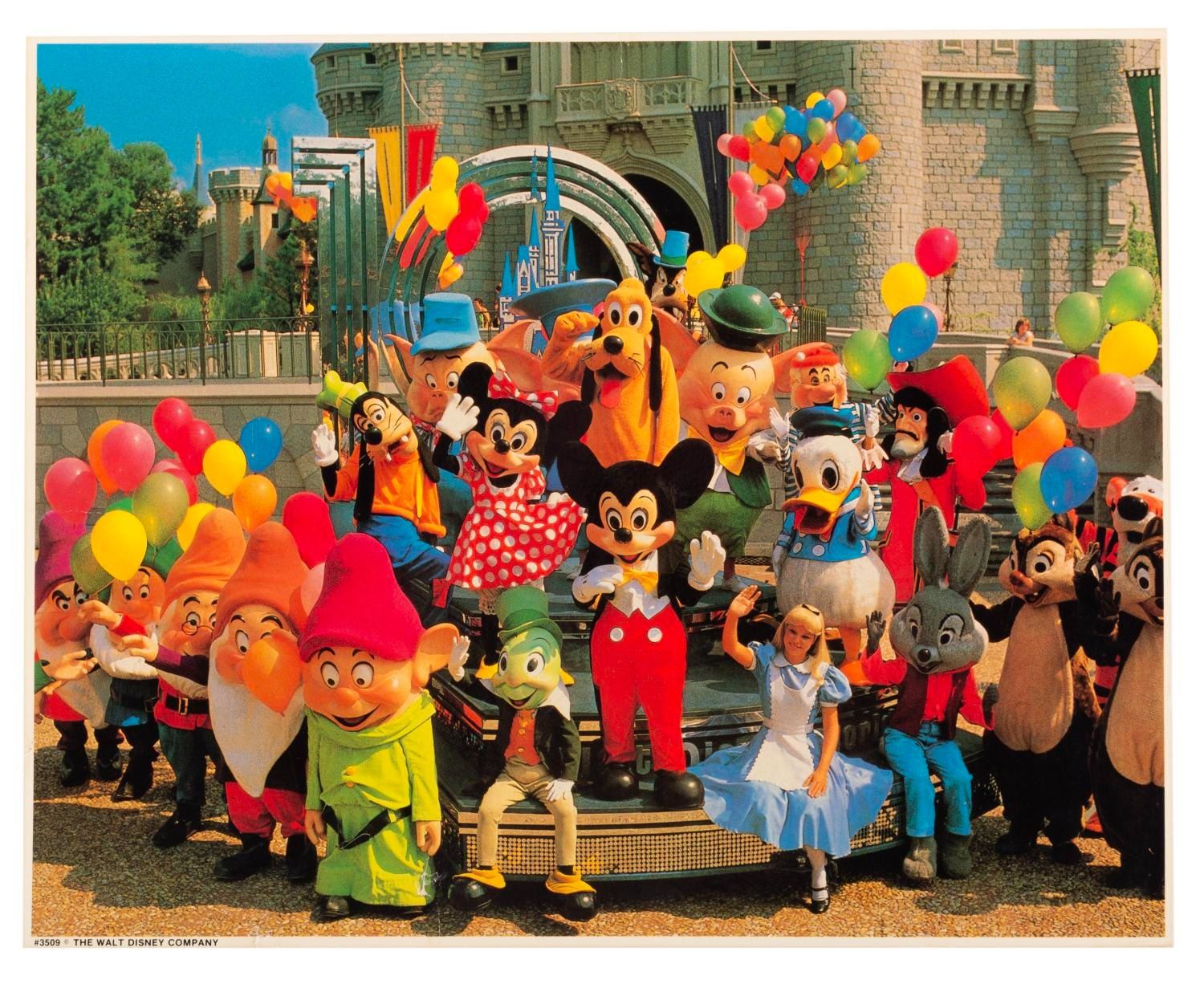 (Walt Disney World, 1981) A photo of Mickey and friends from the Resort's 10th anniversary celebration. Measuring 8" x 10", the photo displays in good condition with creases, scratches, and light discoloration from age.