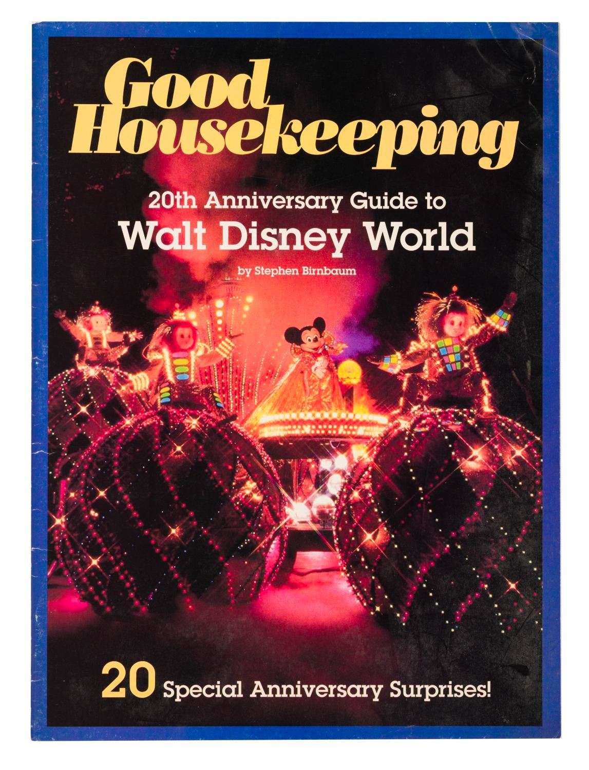 (Good Housekeeping, 1992) A special issue of Good Housekeeping celebrating the 20th Anniversary of Walt Disney World, with 40 pages outlining anniversary events and attractions. The 8" x 11" magazine is in good condition, with wear including creasing to one corner.