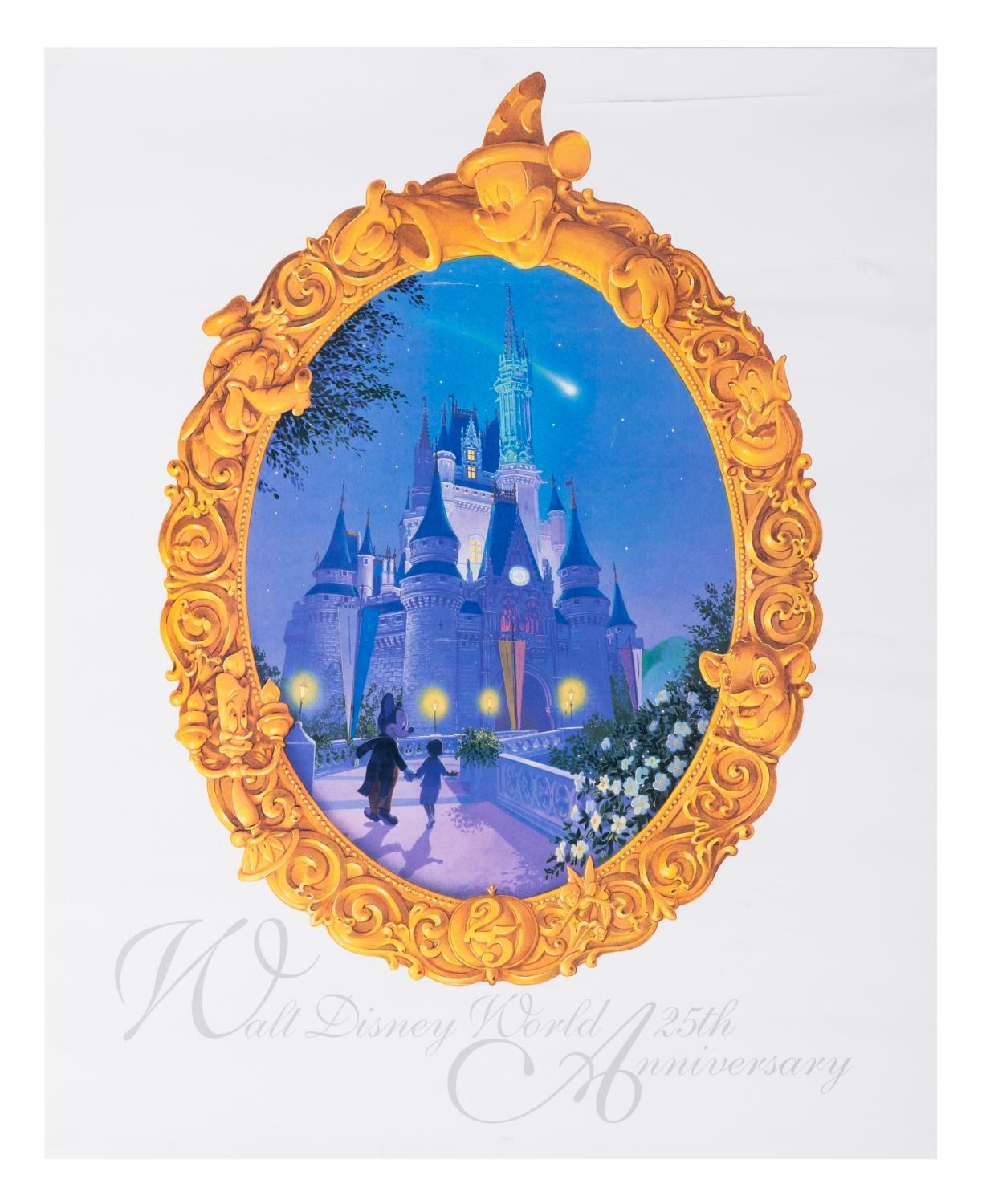 (Walt Disney World, 1996) A Walt Disney World lithograph commemorating the Park’s 25th anniversary in 1996. Measuring 16" x 20", the lithograph is n fair condition, with a 5" slash and crease along the top right edge.