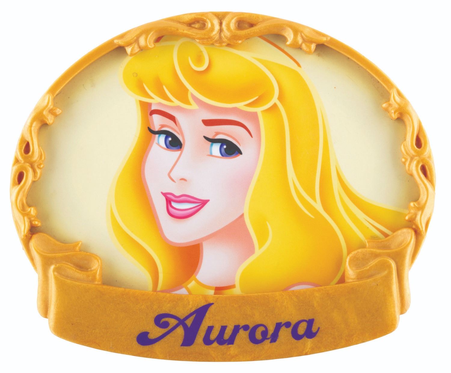 (Walt Disney World, 2013) A small portrait sign from the Aurora meet and greet at Princess Fairytale Hall in the Magic Kingdom. Measuring 8” x 9.5”, the "Sleeping Beauty" star's sign is in very good condition with light scratches, spots, and wear from Park use.