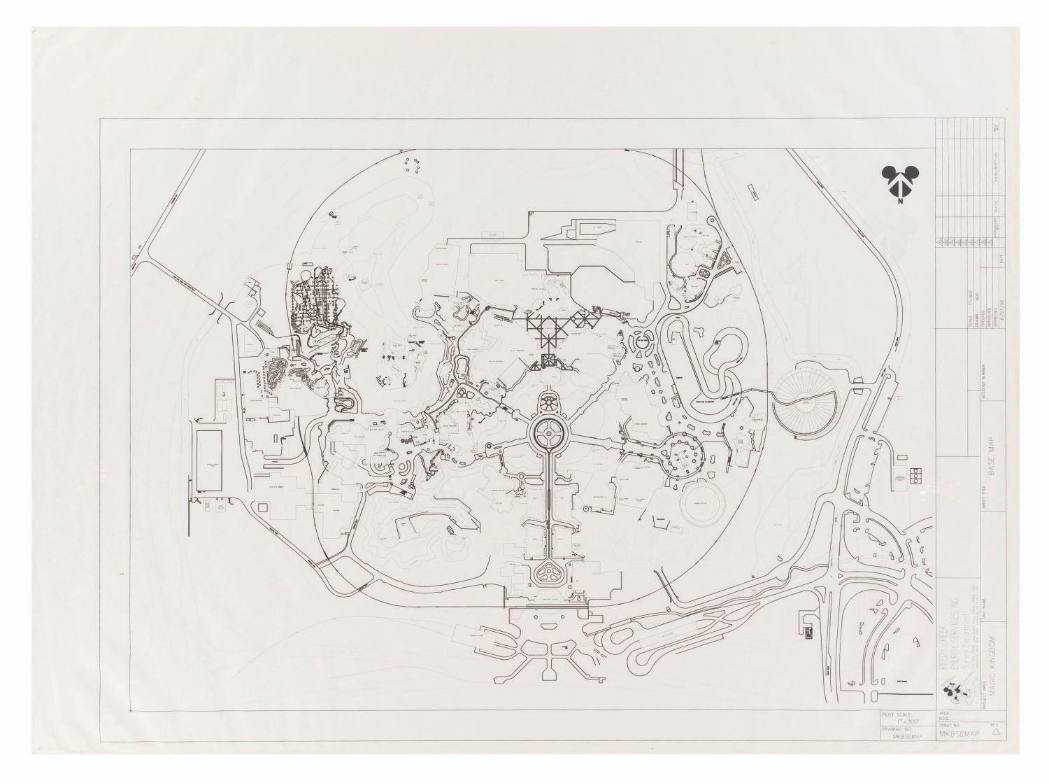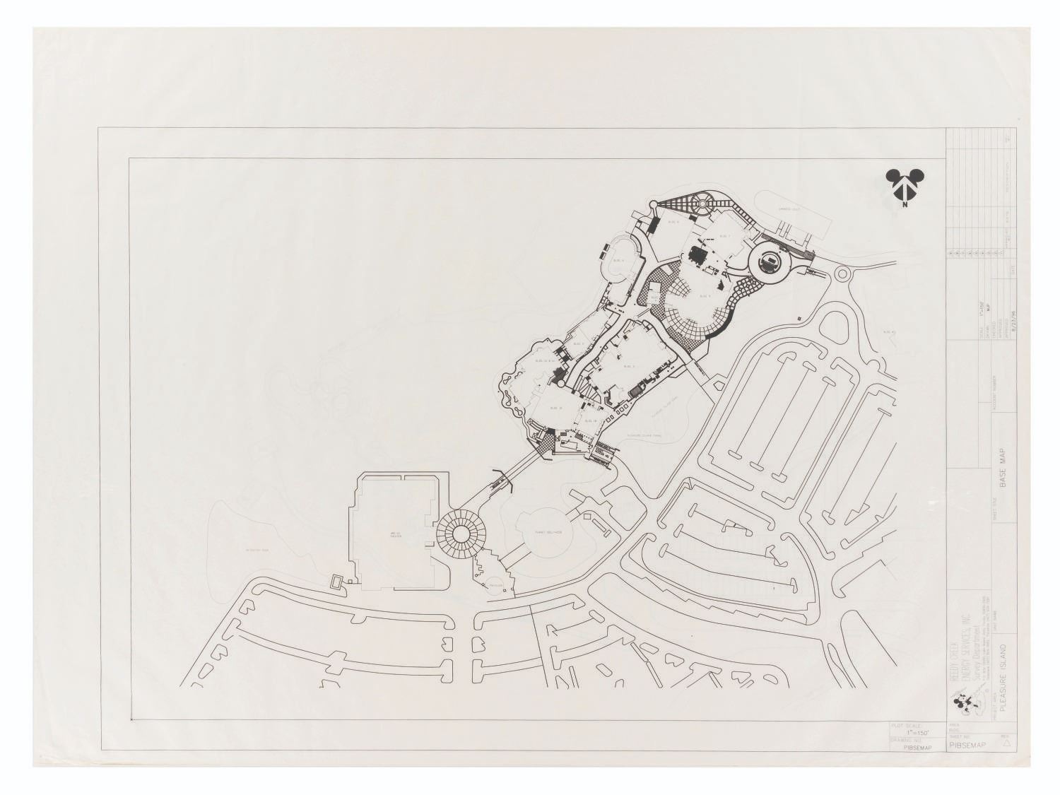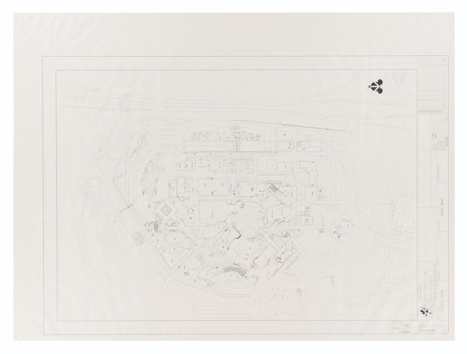(Walt Disney World, 1996) A collection of six large blueprint plans of Walt Disney World. Among the survey blueprints are base maps and a topographical survey produced for Reedy Creek Energy Services, each depicting areas including the Magic Kingdom, Studio Tour, Typhoon Lagoon, Pleasure Island, River Country, and Blizzard Beach. Measuring 36" x 48" each, the blueprints are in good condition with light tears, creases, and wear.