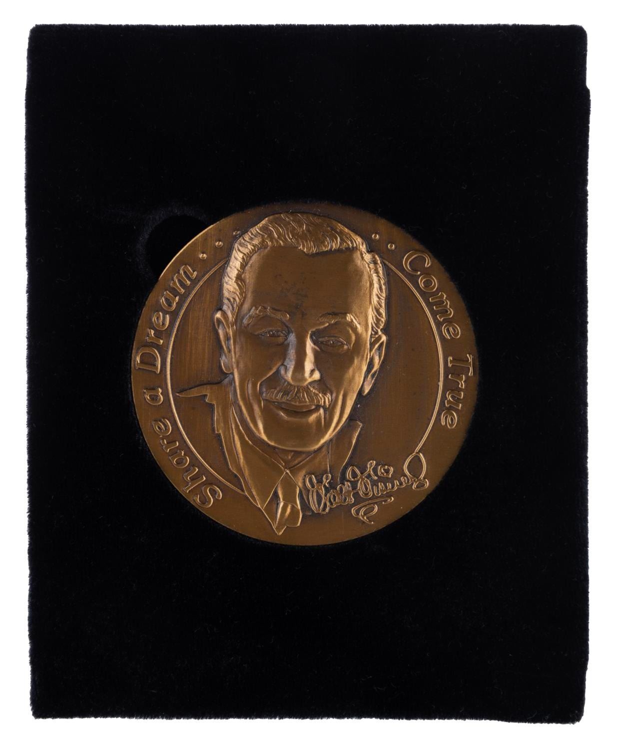 (Walt Disney World, 2001) A Cast Member exclusive medallion celebrating the 100th anniversary of the birth of Walt Disney. Measuring 2.5" in diameter in a 4" x 5" and .5" thick box, the medallion is in very good condition with light wear overall.
