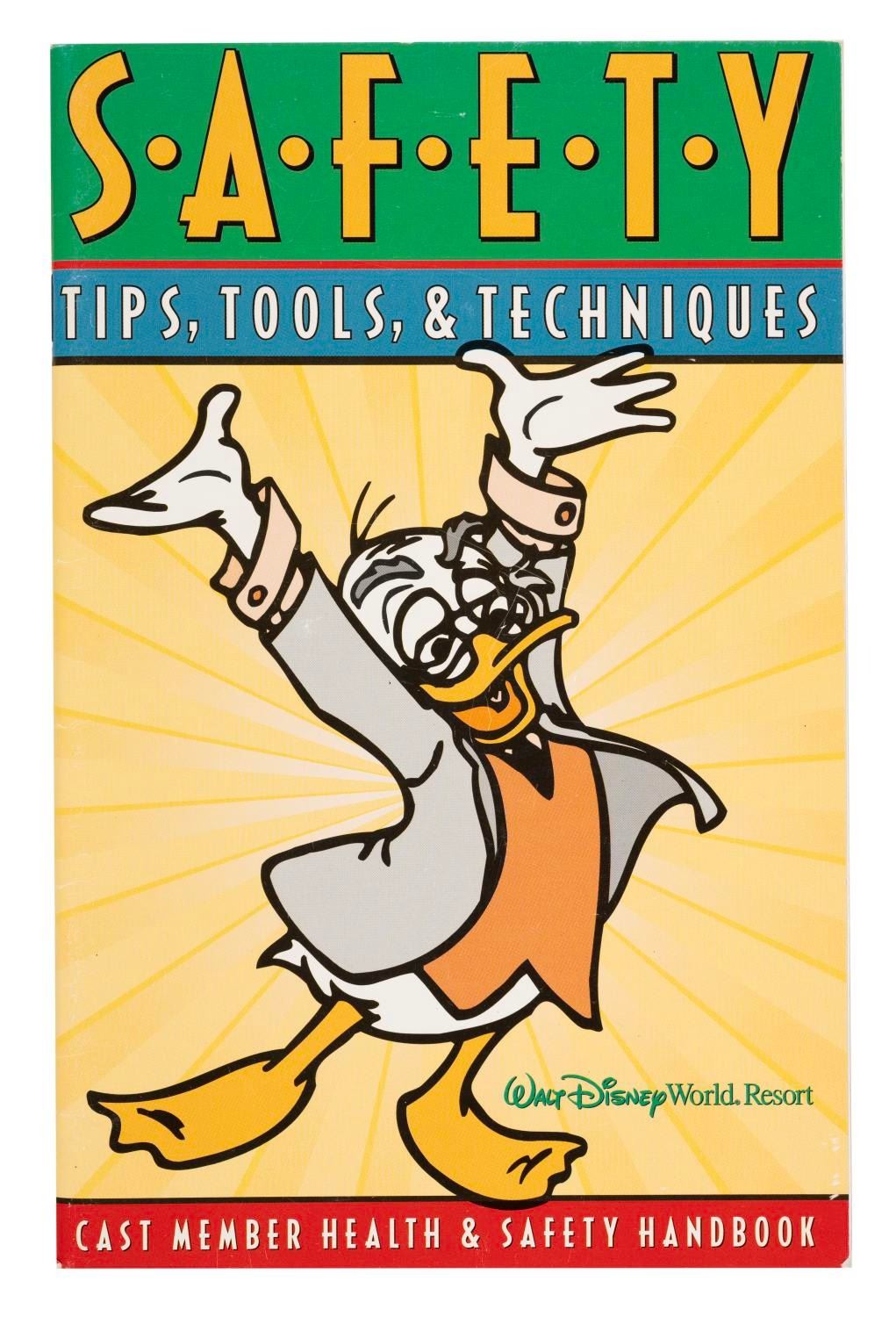 (WDW, ) A Cast Member safety handbook featuring Ludwig Von Drake. Measuring 5.5"x8.5" the book is in very good condition with light handling wear to the front and back covers.
