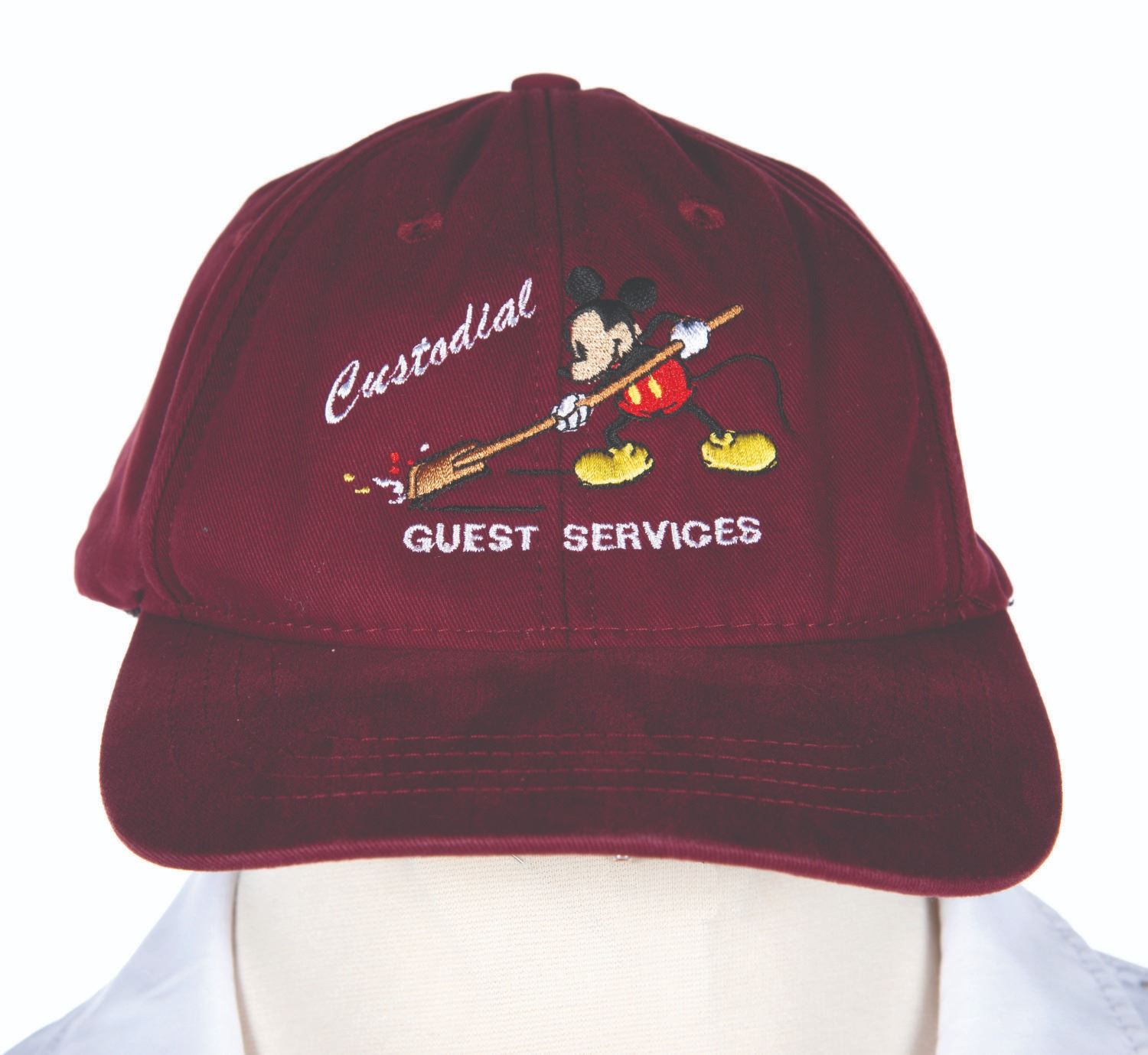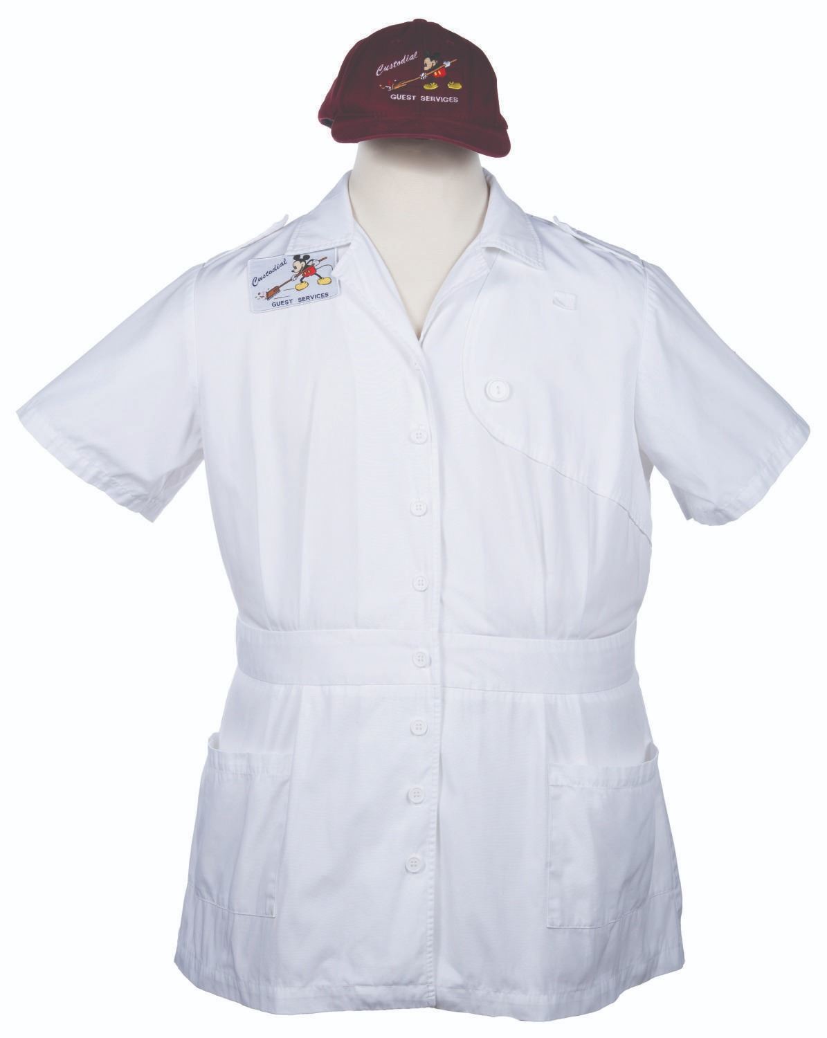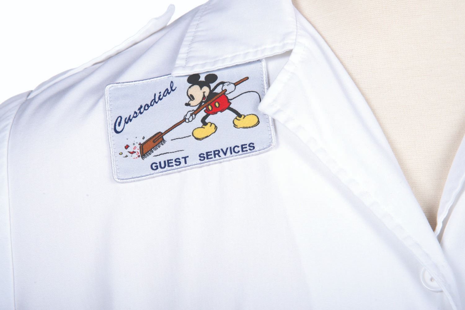 (Walt Disney World, 2010s) A shirt, toolbag, and hat used by Walt Disney World Custodial Guest Services Cast Members. The shirt measures a Female Size 18, while the toolbag and hat are "one size fits all." The garments are in fine condition, despite minor wear from use.
