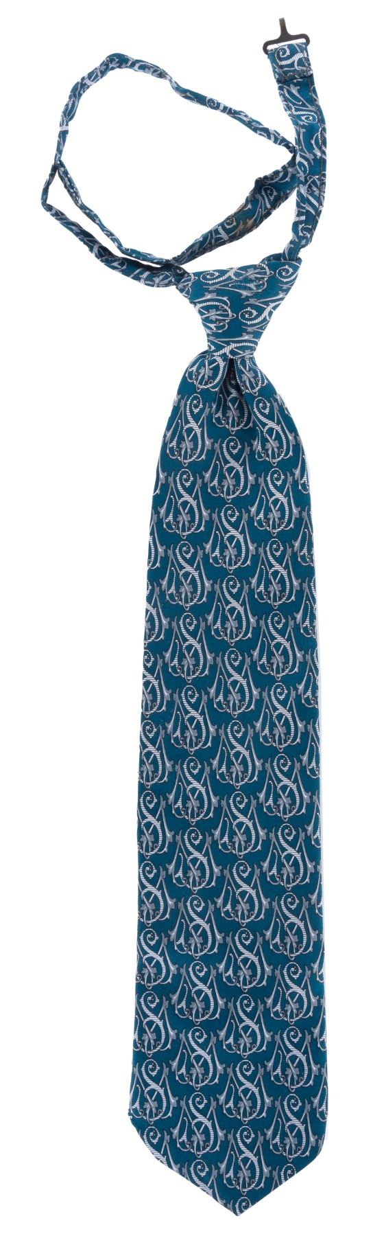 (Walt Disney World, 1990s-2000s) An Emporium Shop Male Tie with “MS” (Main Street) letter patterns. The tie is labeled One Size Fits All and displays in good condition, with one clasp missing.