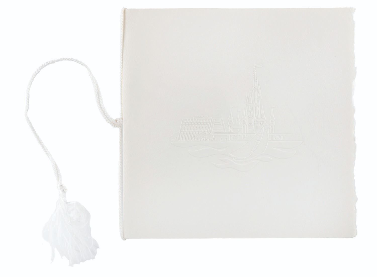 (Walt Disney World, 1971) An invitation for the Walt Disney World Grand Opening and Dedication Ceremony held on October 23 - 25th, 1971. The invitation features a beautiful embossed graphic of Cinderella Castle and the Contemporary Hotel on the cover with each day's events described within. Measuring 6.25” x 6.25”, the invitation is in very good condition with slight waviness and light discoloration typical of age.