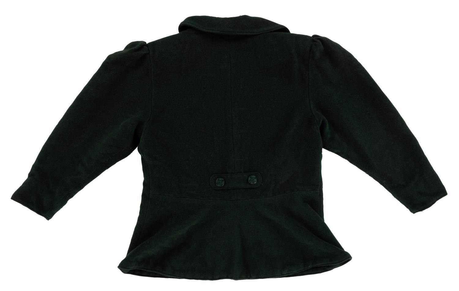 (Walt Disney World, 1990s-2000s) A green jacket with ornate buttons, worn by Cast Members at Walt Disney World. Labeled a size L, the jacket is in good condition with color loss, pilling, and wear from Park use.