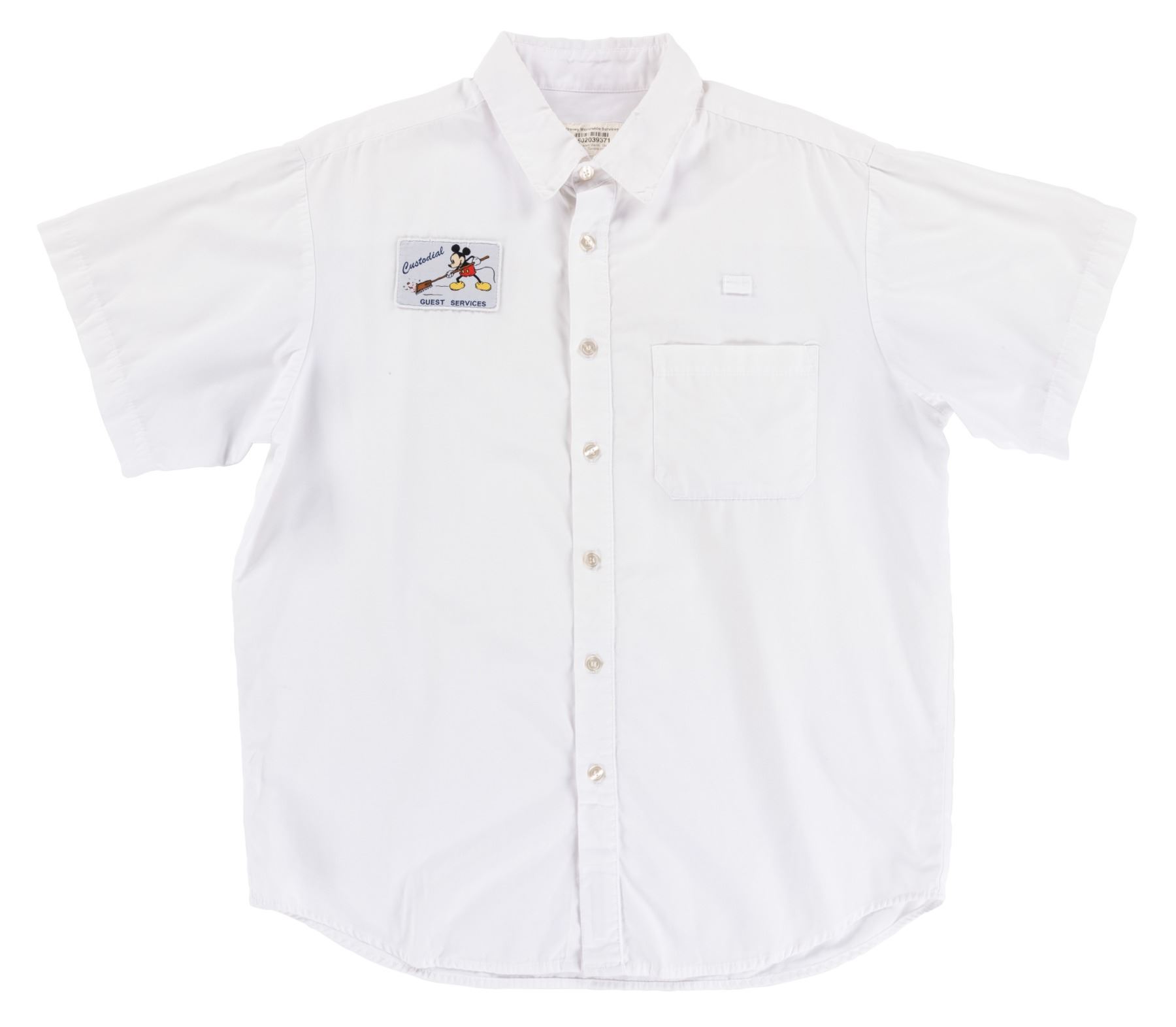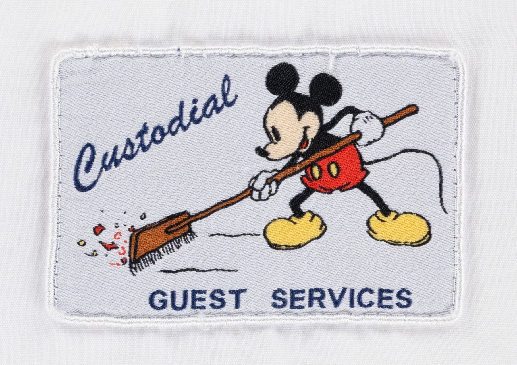 (Walt Disney World, 2010s) A shirt worn by Walt Disney World Custodial Guest Services Cast Members. The shirt measures a male size medium and is in very good condition with light wear from use.