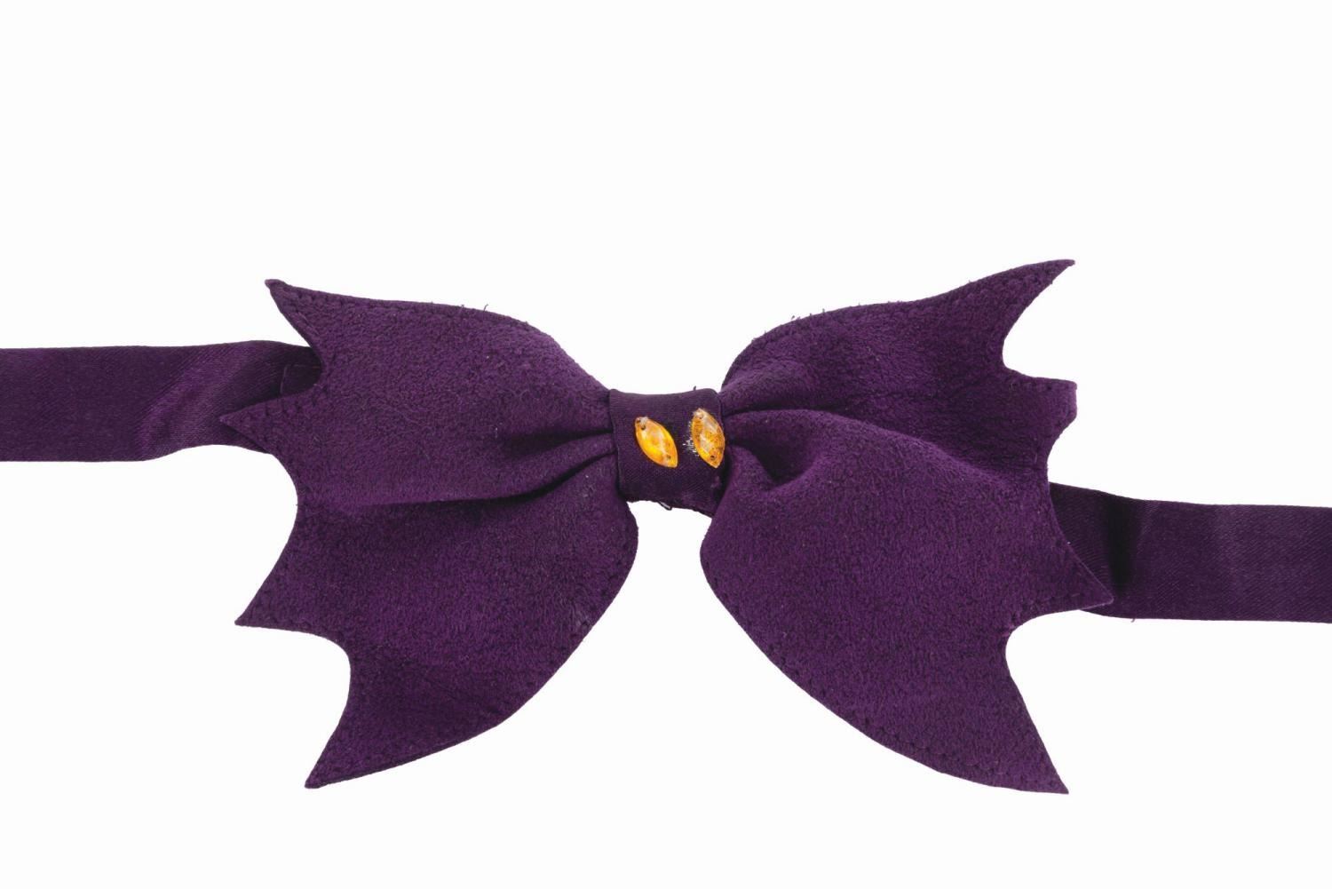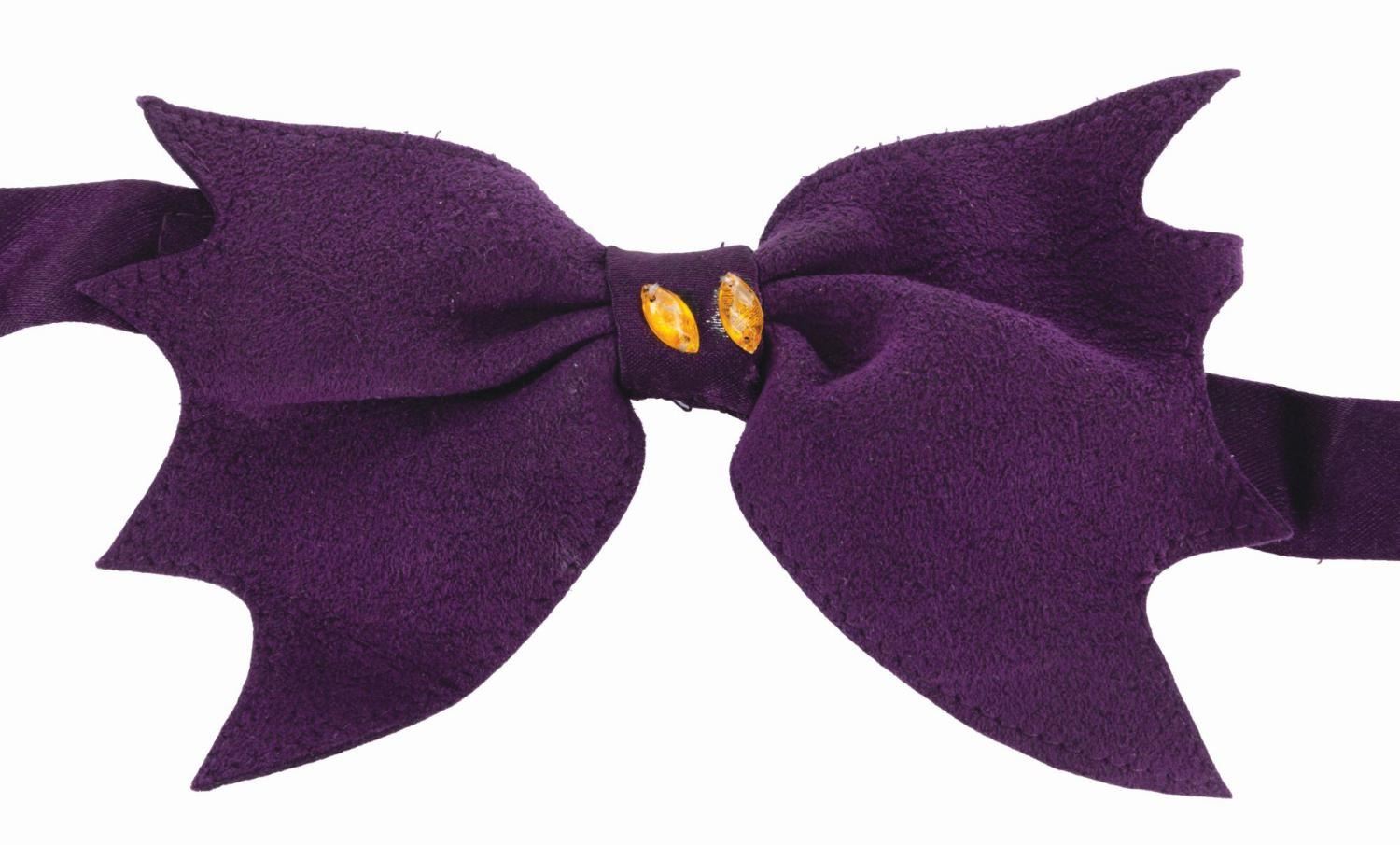 (Walt Disney World, 1980s-2000s) A Walt Disney World Cast Member bow tie from The Haunted Mansion. Labeled a size OSFA, the bow tie is in good condition with light pilling, wear, and loose gems.