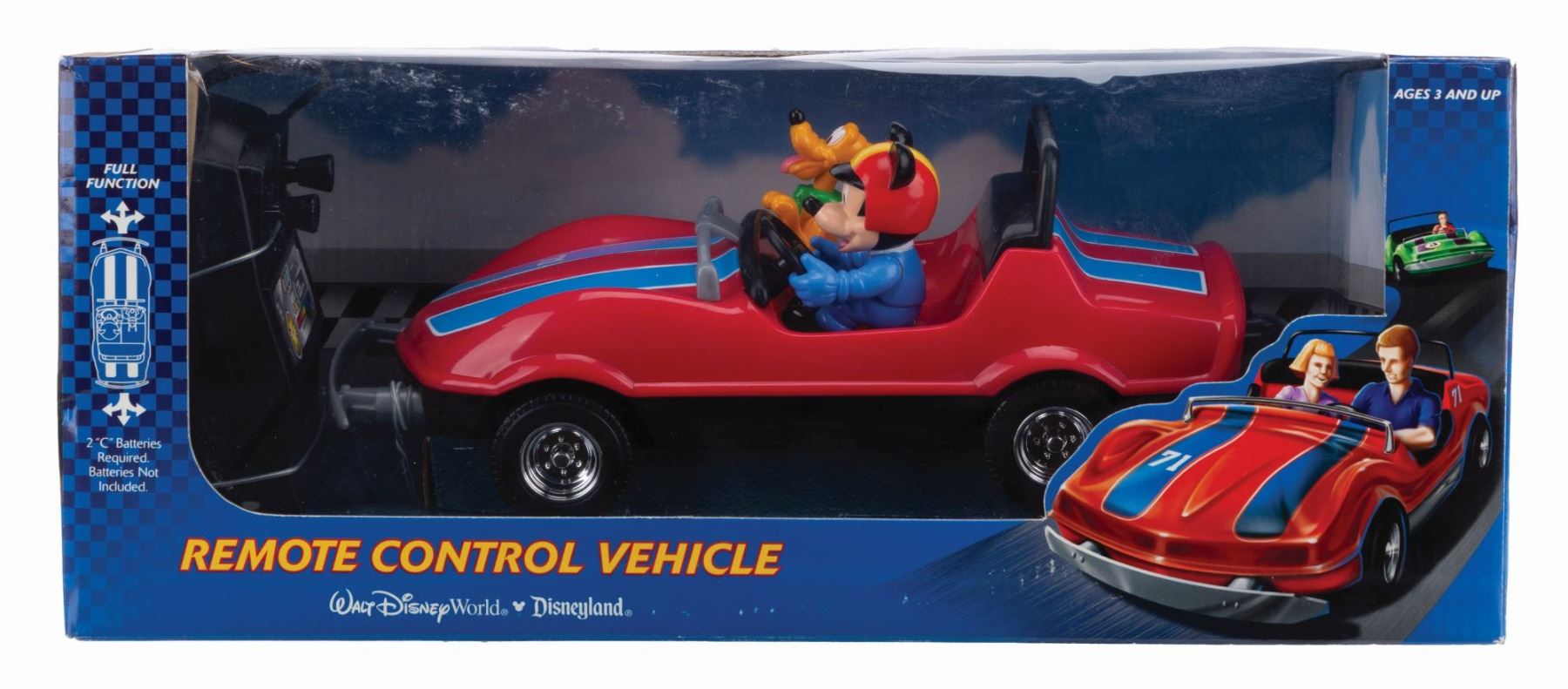 (Walt Disney World, 1990s-2000s) A Walt Disney World Tomorrowland Indy Speedway remote control race car toy. The car requires 2 C batteries (not included) and is untested and unopened. Measuring 3” x 9.5” x 4” in its 5.5” x 13.75” x 5.5” tall box, the remote control car is in fine condition, while the box is in very good condition with light wear.