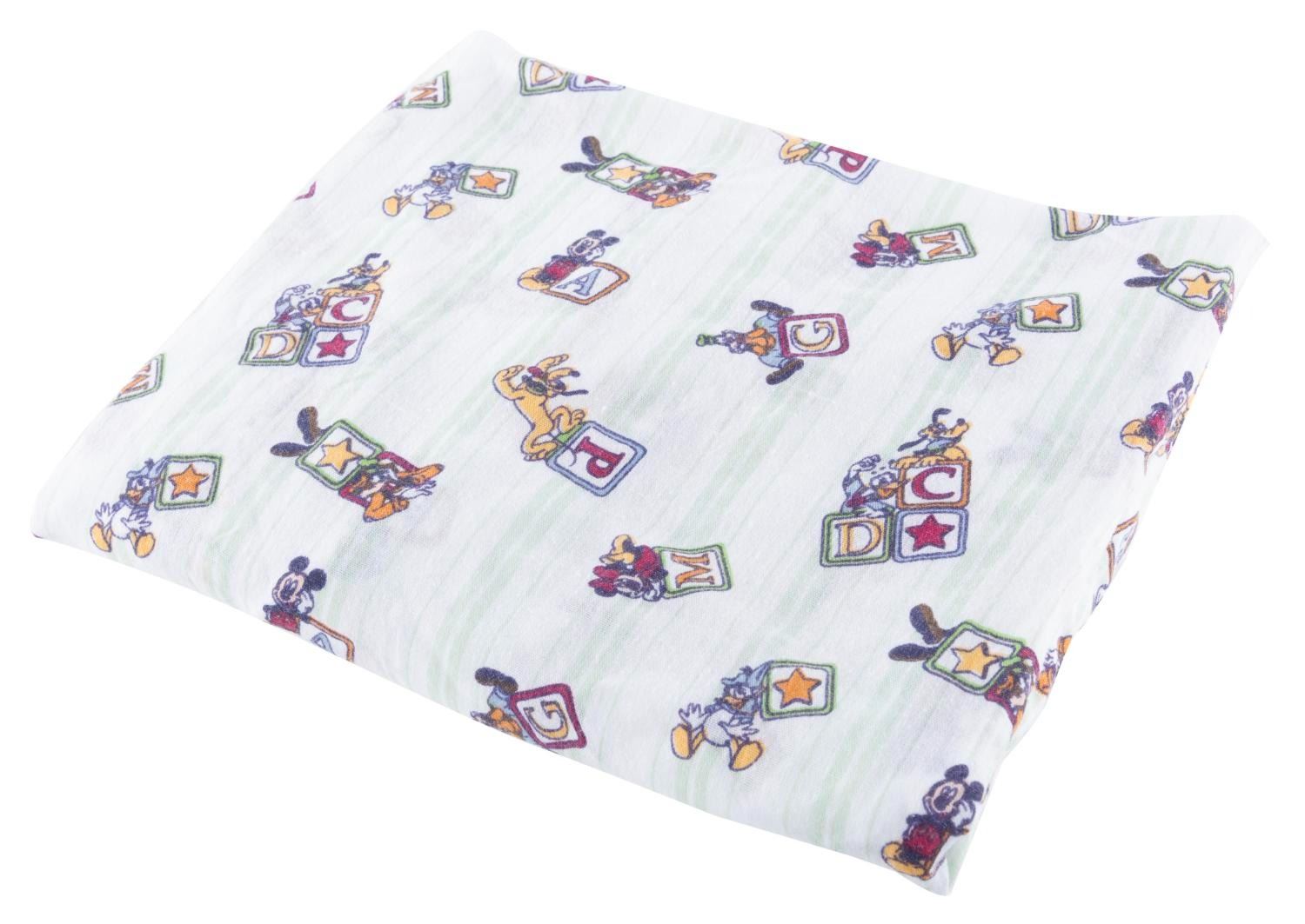 (Walt Disney World, 1970s-90s) A Fab Five and ABC block pattern crib sheet, used at changing stations across the Resort. Measuring 28” x 43”, the crib sheet is in very good condition with light fading.