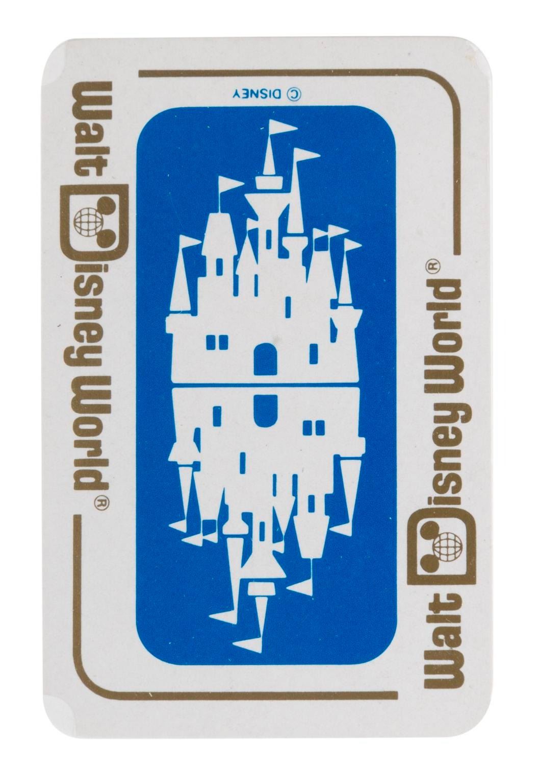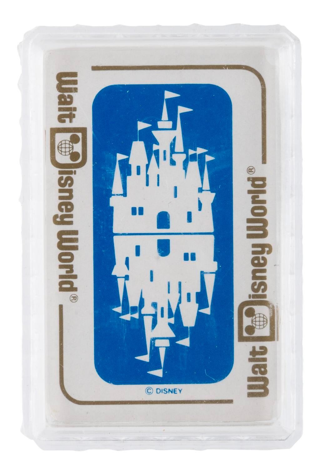 (Walt Disney World, 1970s-80s) A sealed deck of Walt Disney World mini playing cards featuring Cinderella Castle. Measuring 1.5" x 2.25" and housed in a 1.5" x 2.5" plastic case, the cards are in fine condition.