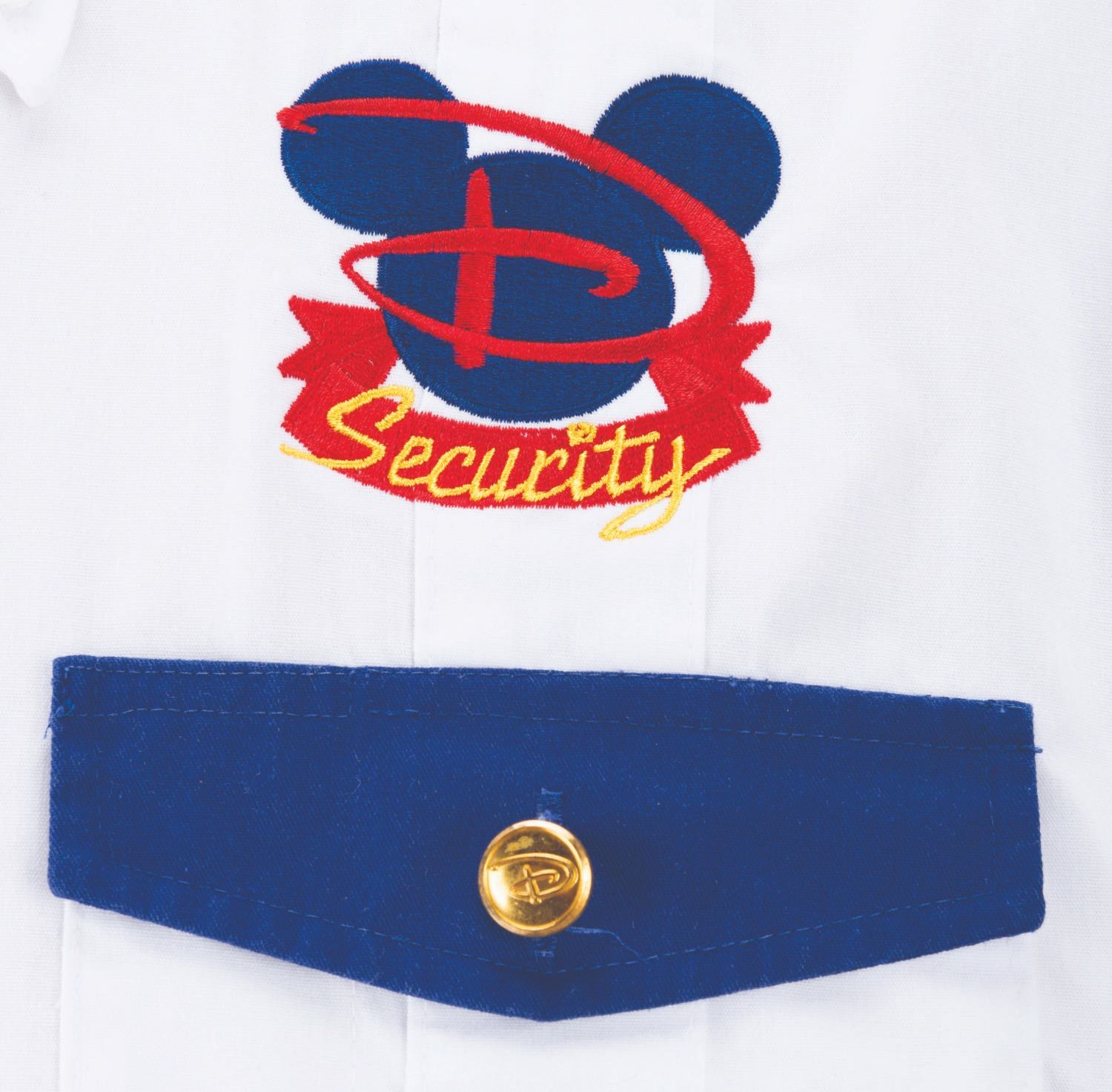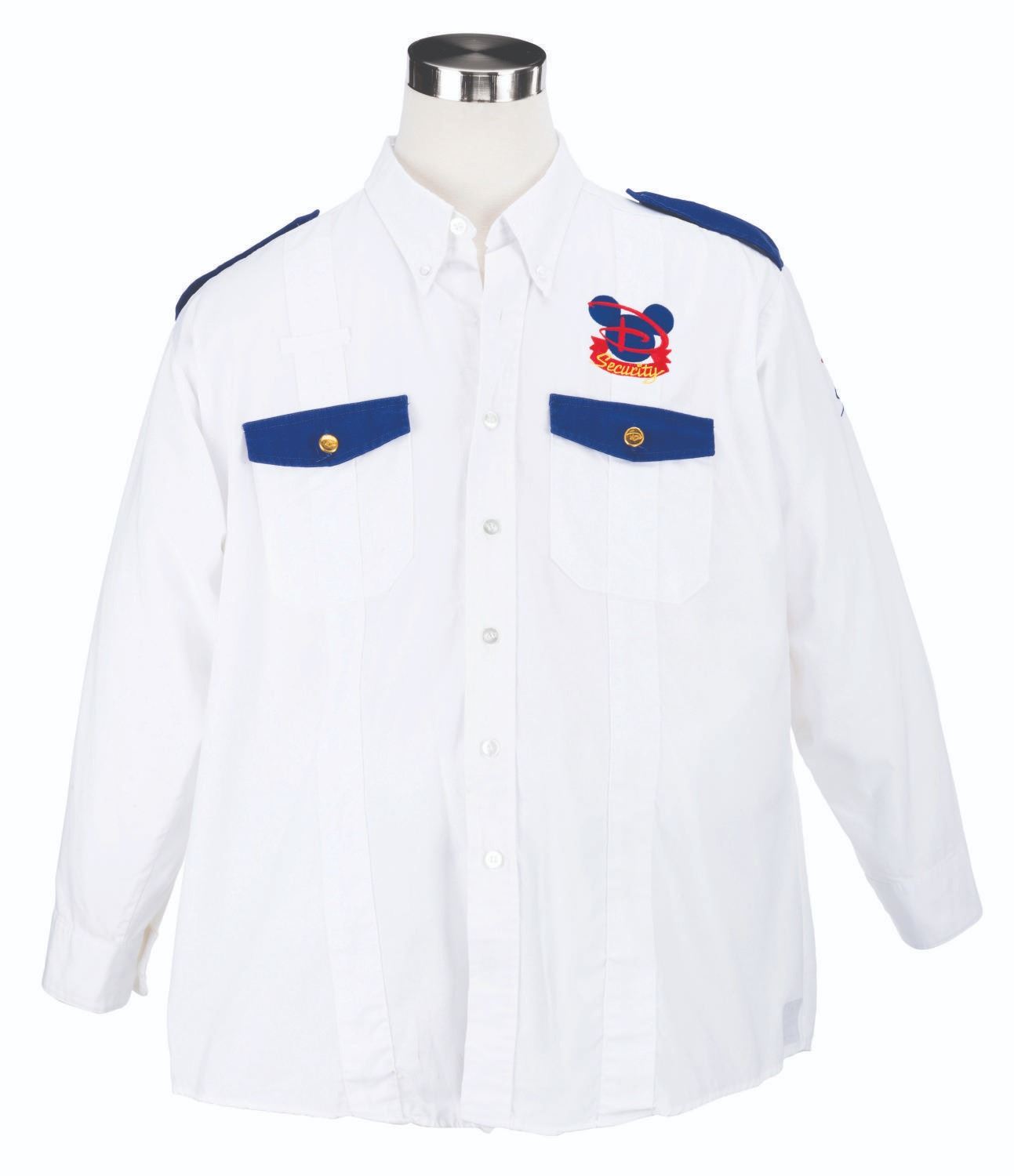 (Walt Disney World, 2000s) A Disney Security uniform shirt worn by Cast Members at the Magic Kingdom. Labeled a size 3XL-R, the shirt displays in very good condition with stains and light wear from Park use.