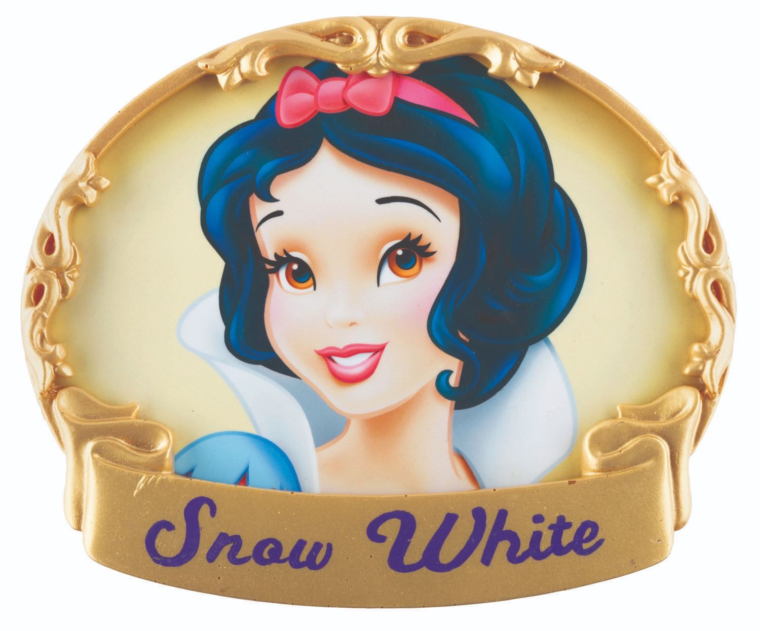 (Walt Disney World, 2013) A small portrait sign from the Snow White meet and greet at Princess Fairytale Hall in the Magic Kingdom. Measuring 8” x 9.5”, the sign is in very good condition with pin holes on the nameplate and light wear from Park use.