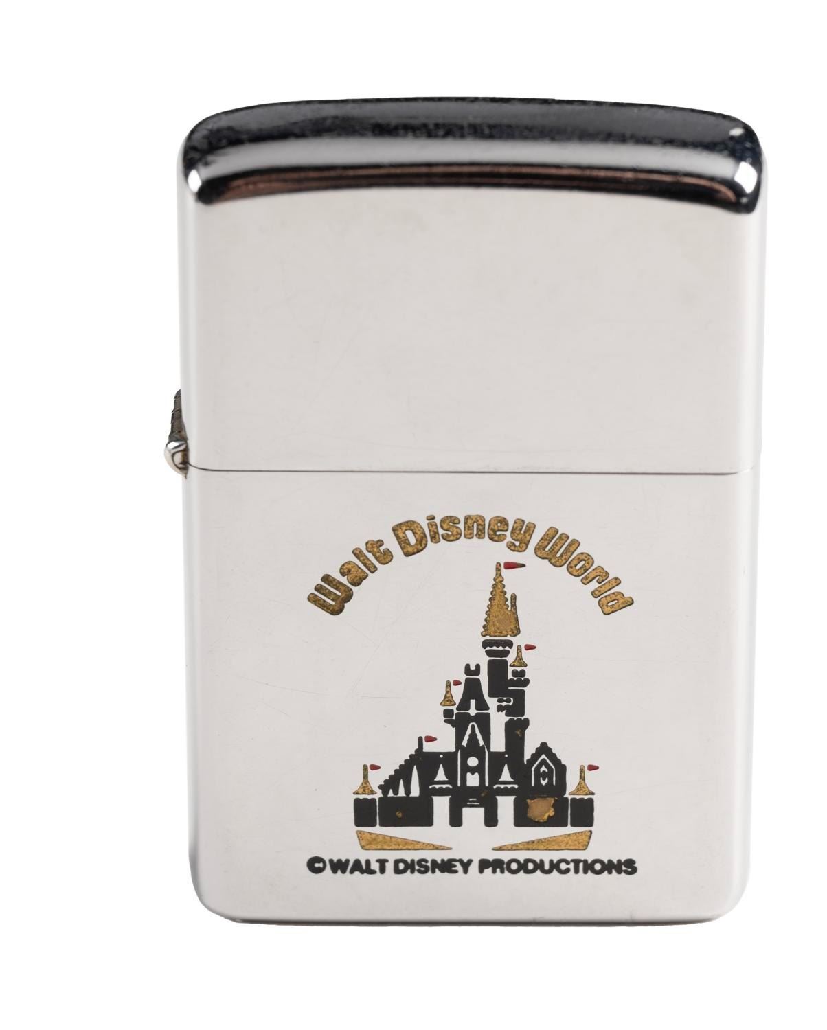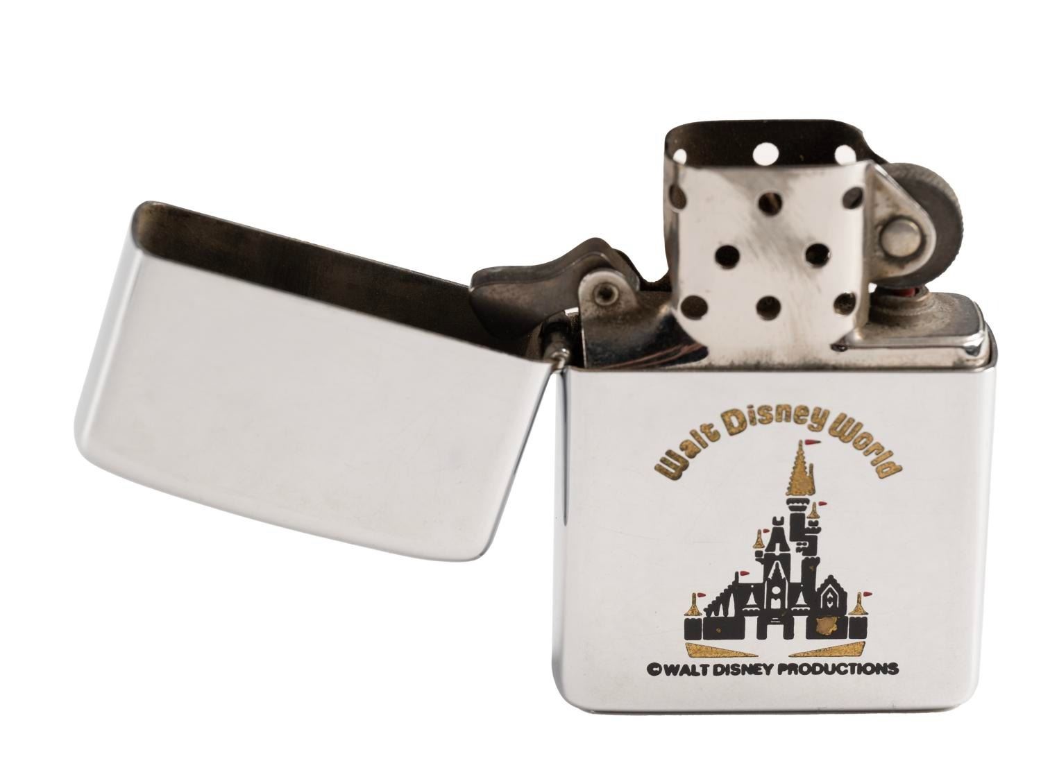(Walt Disney World, 1970s-80s) A souvenir lighter from Walt Disney World featuring Cinderella Castle. Measuring 1.5"x2.25", the lighter is in good used condition exhibiting scratches and wear to the wick, wheel, and throughout.