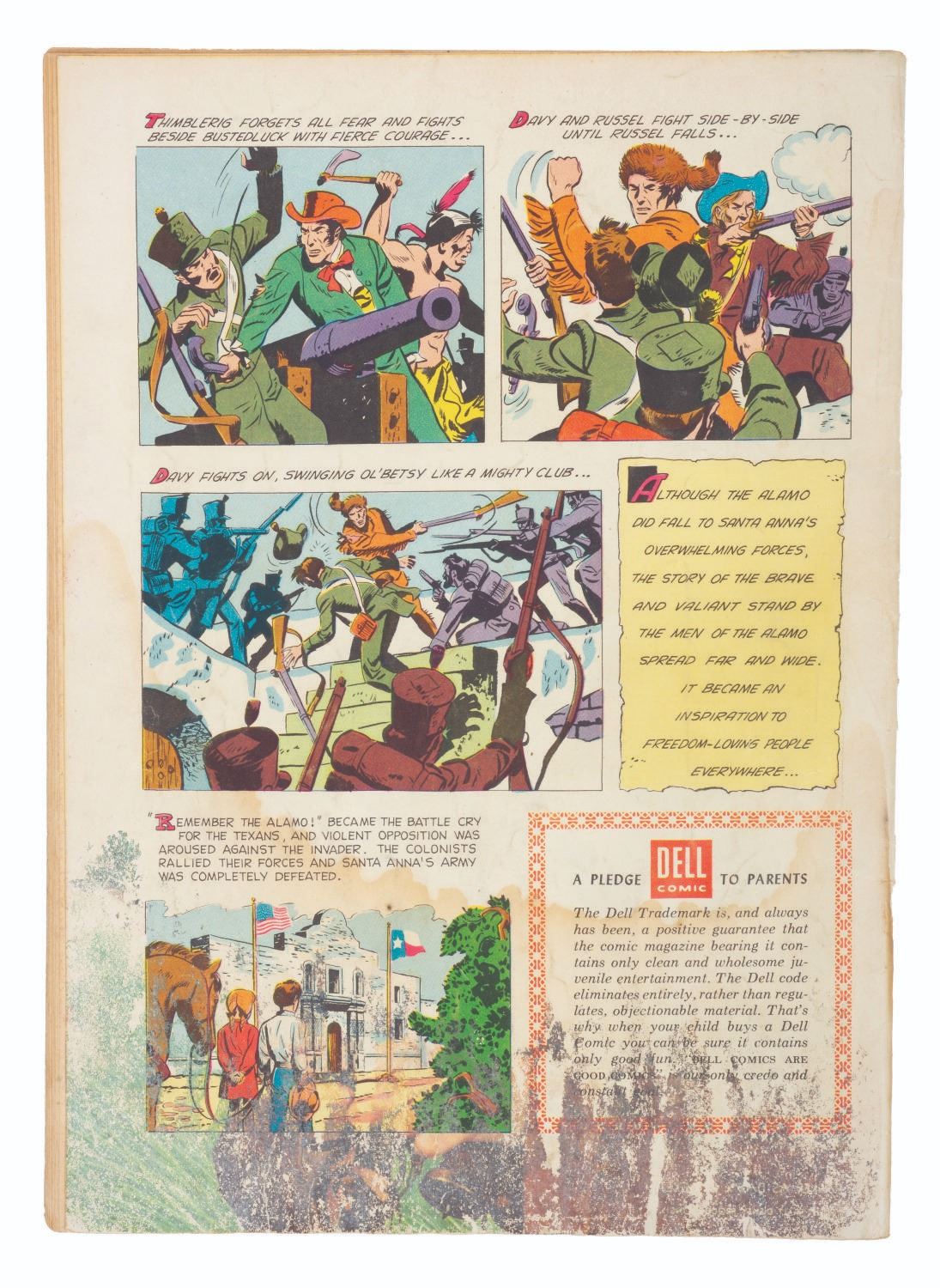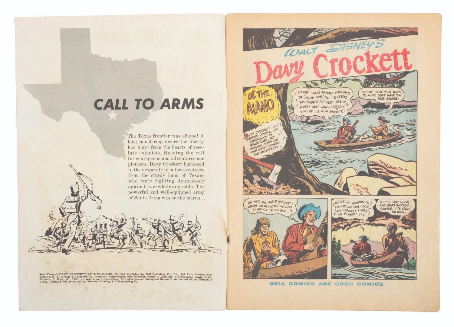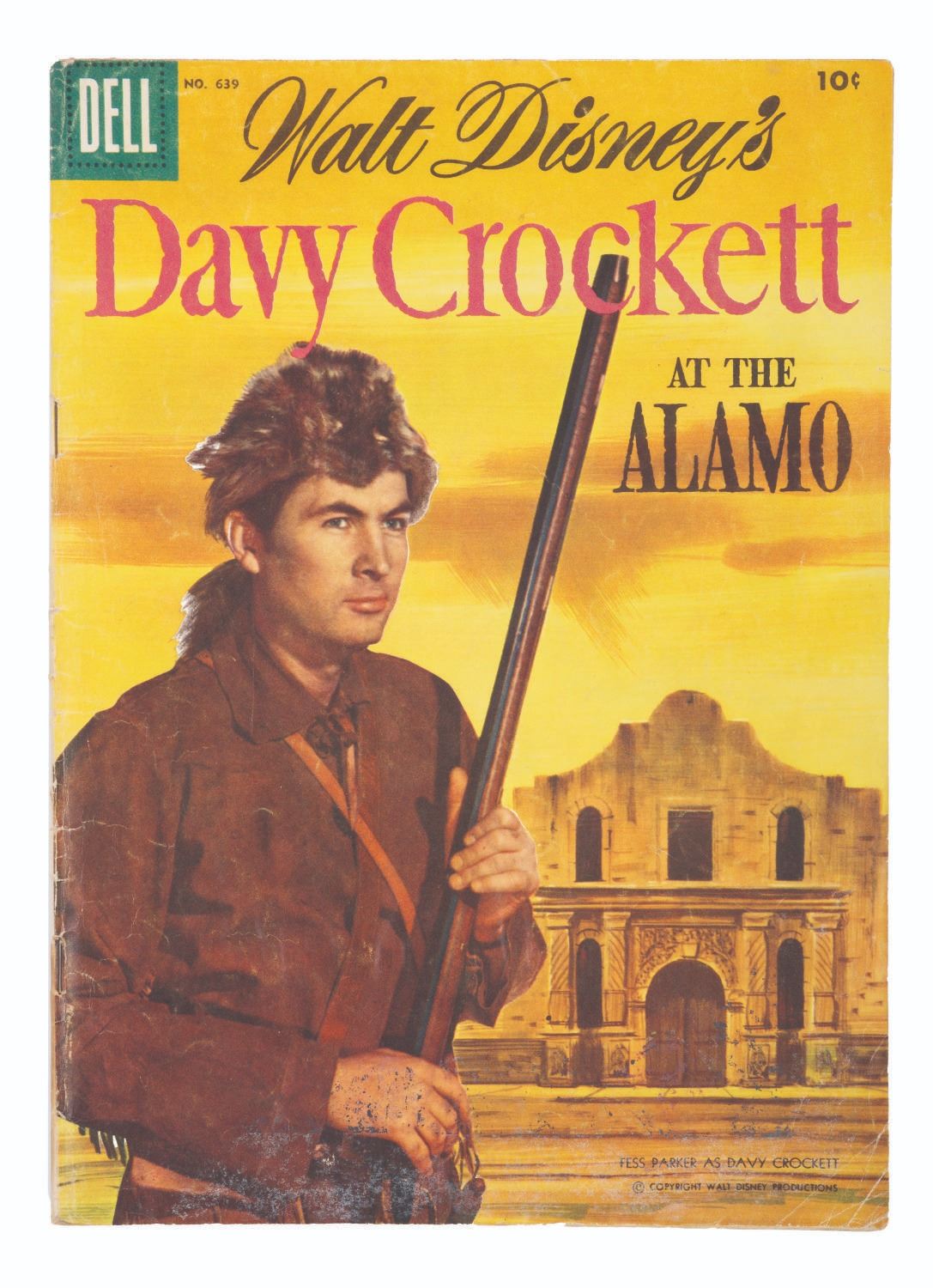 (DELL, 1955) A Walt Disney's Davy Crockett at the Alamo comic book adaptation of Walt Disney's first picture featuring the "King of the Wild Frontier." Measuring 7.25" x 10.25", the comic is in very good condition, with creases and wear to the spine, edges, and corners.