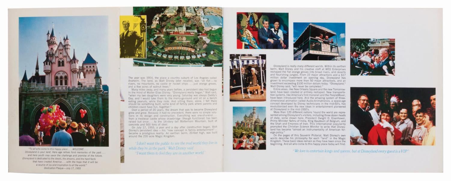 (Disneyland, 1968) A Walt Disney's Disneyland - A Pictorial Souvenir and Guide containing colorful photos from around the Park, quotes from Walt, and general information. Measuring 8.75" x 11.5", the guide displays in very good condition with scratches, creases, and edge wear.