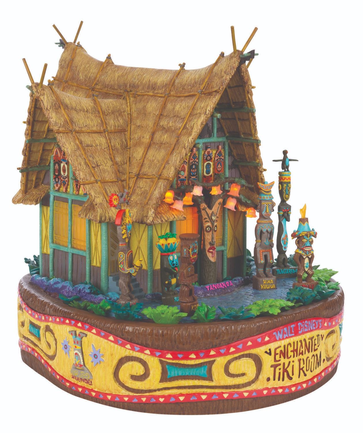 (Disneyland, 2004) A stunning Magical "Big Figurine" of Walt Disney's Enchanted Tiki Room at Disneyland created by Larry Nikolai. This "Big Fig" is battery-powered with lights throughout and has six removable Tiki Garden Gods that have magnetic bases. The Pele figure has an illumination feature requiring two 2LR621 batteries (not included). This dynamic piece measures 17.5" tall, and is in fine as-new condition, and includes a facsimile of instructions.