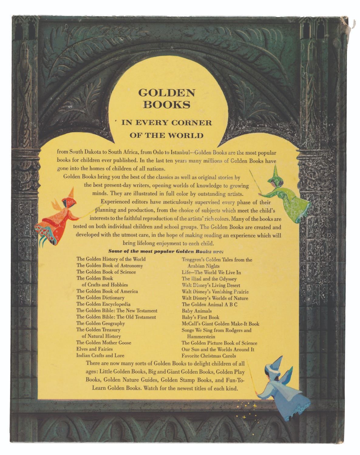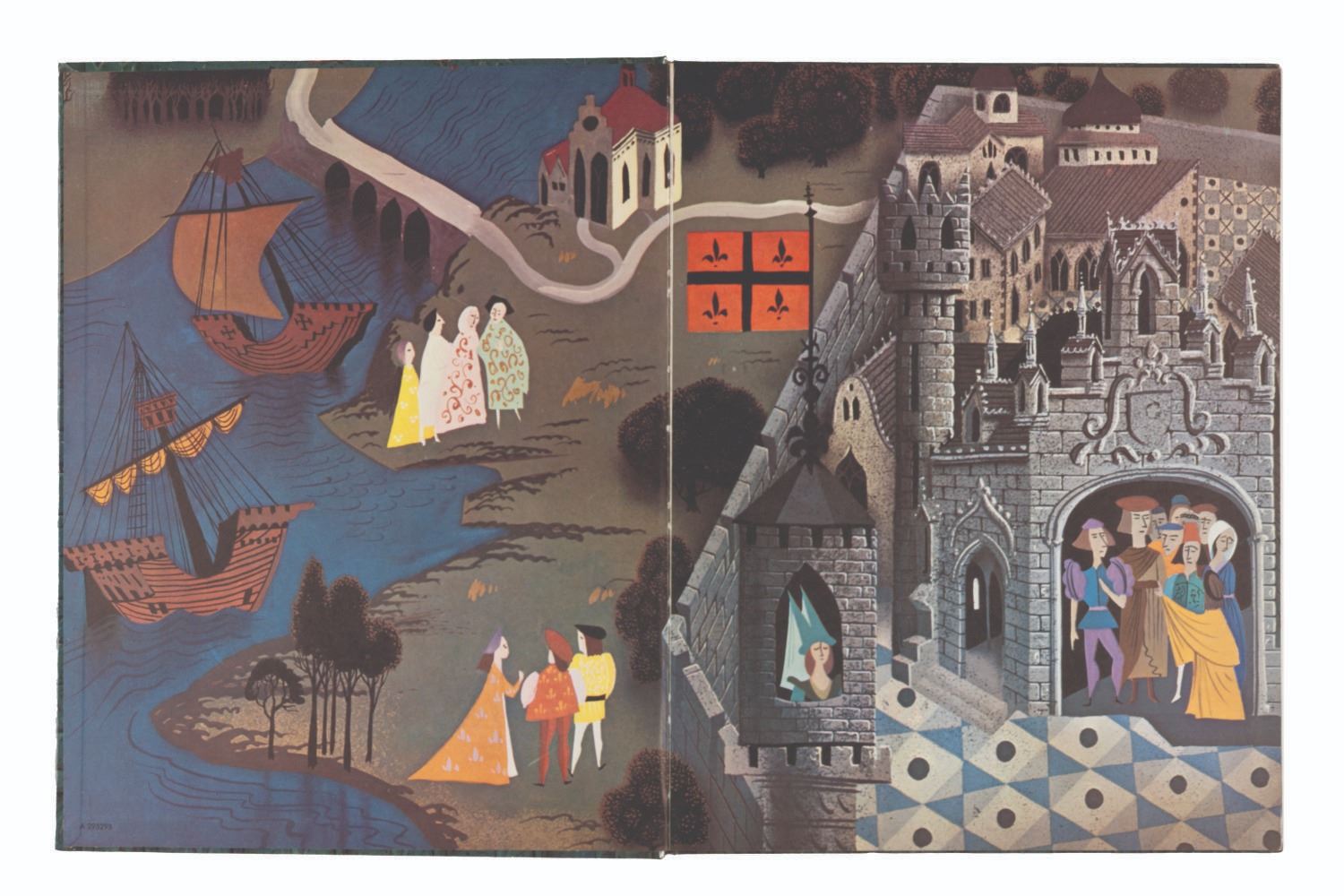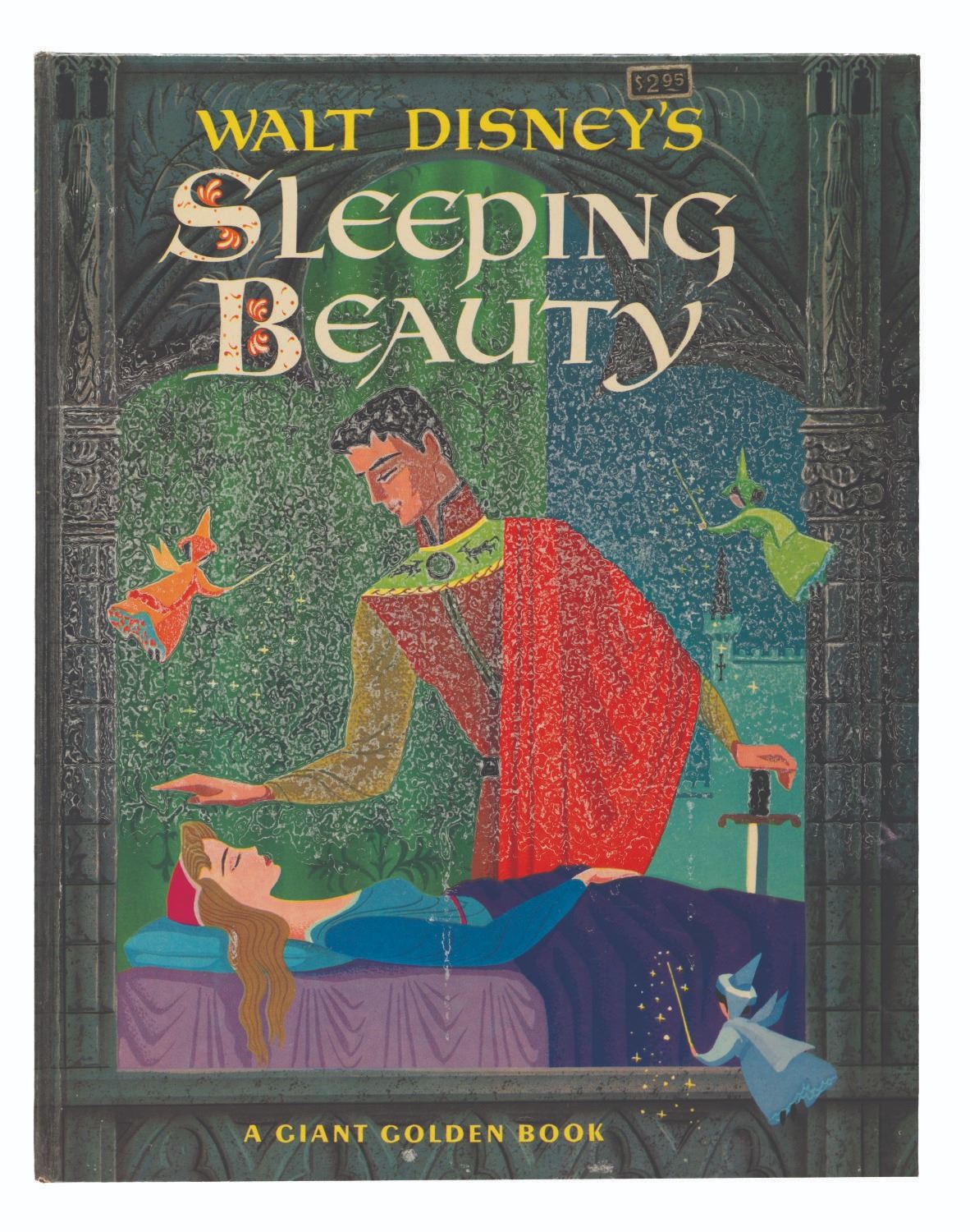 (Simon and Schuster, 1957) A 57-page "Sleeping Beauty" Giant Golden book. Measuring 10.25" x 13", the book is in good condition with edge wear, notably on the spine, and lifting to the clear overlay of the cover.