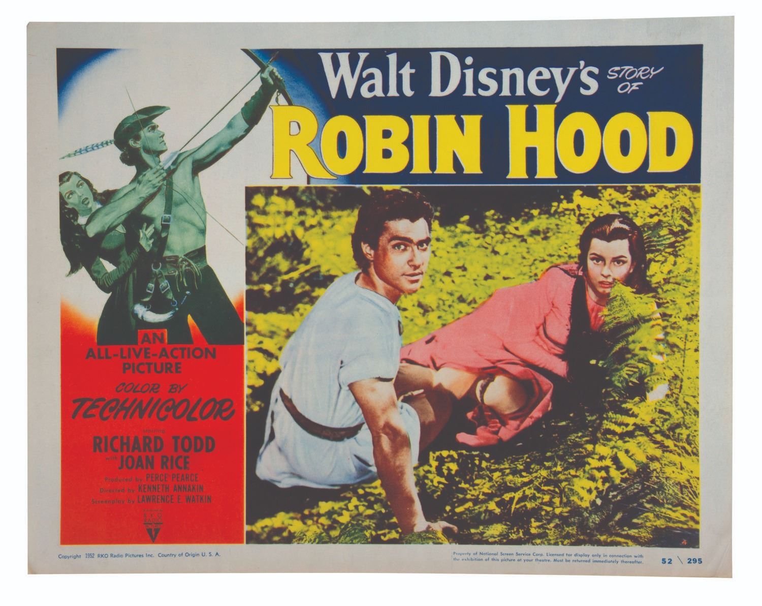 (Disney,1952) An original lobby card from Walt Disney's live action film,"The Story of Robin Hood." Measuring 11"x14", this card is in very good condition, with light wear.