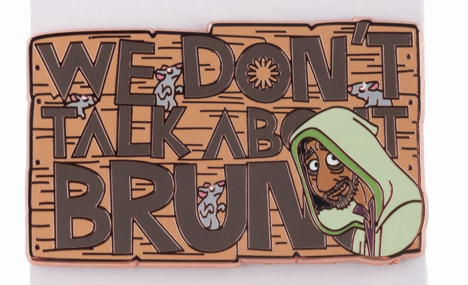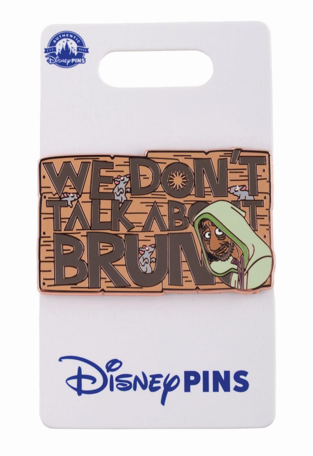 (Disney, 2022) A "We Don’t Talk About Bruno" pin from "Encanto." Measuring 1" x 2", the pin is in fine condition on the original card.