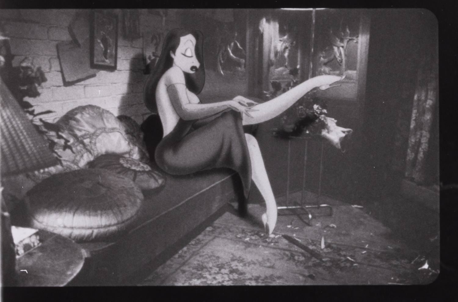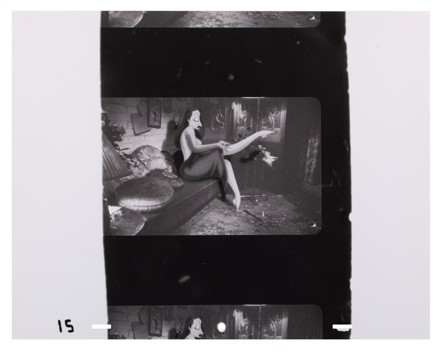 (Touchstone, 1988) A production-used photo print of Jessica Rabbit from "Who Framed Roger Rabbit," created for special optical effects in a scene that was ultimately cut from the film, commonly known as "The Pig Head Scene." Measuring 11" x 14" the print is in very good condition with light production wear.