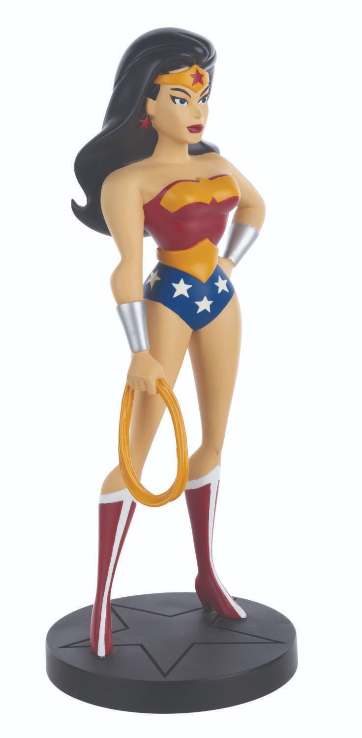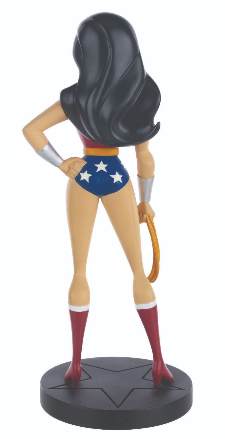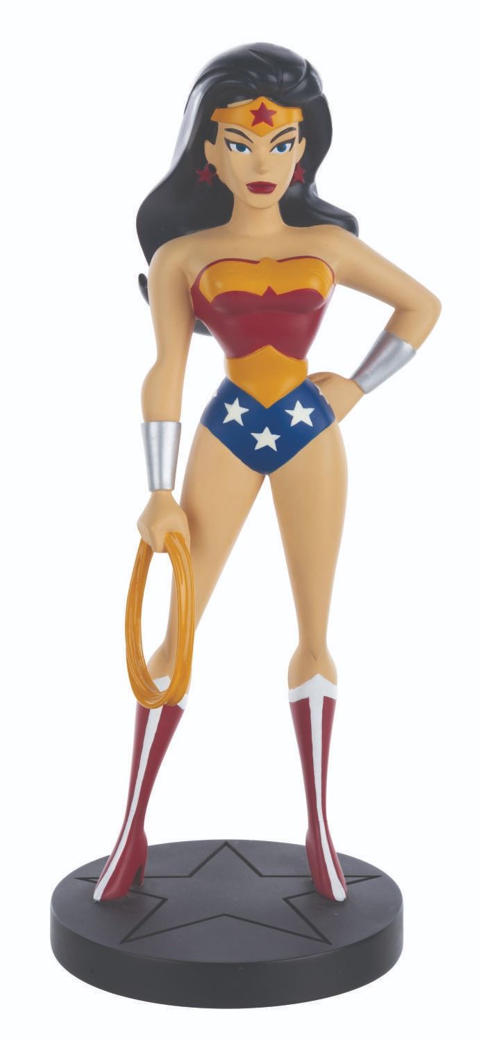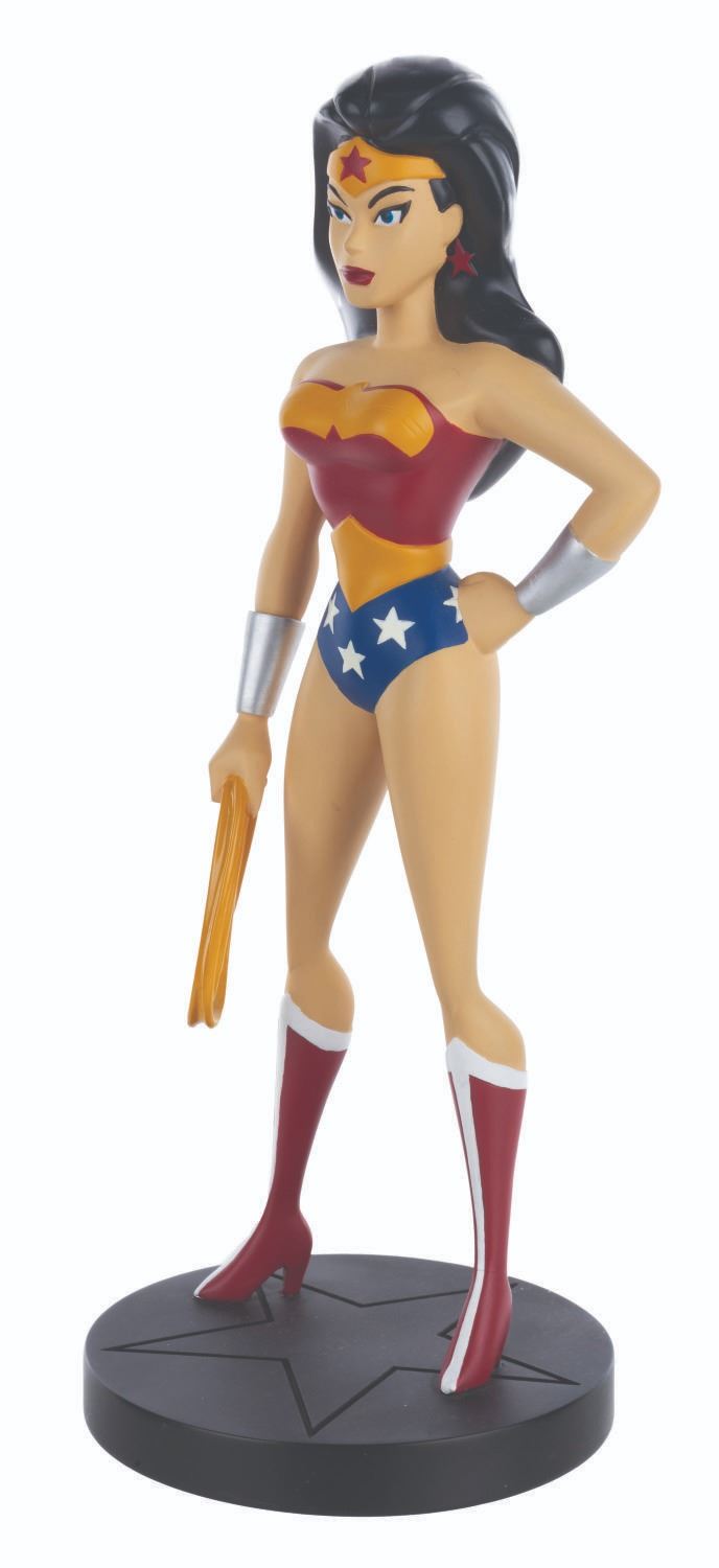 (Warner Bros., 2000) A limited edition Wonder Woman figure, inspired by the animator's maquette sculpted by Glenn Wong and based on character designs by Bruce Timm. This piece was released in a limited edition through the Warner Brothers Gallery. Numbered 604/2500, the resin figure measures 4.75" diameter x 12.5" tall and is in fine condition.