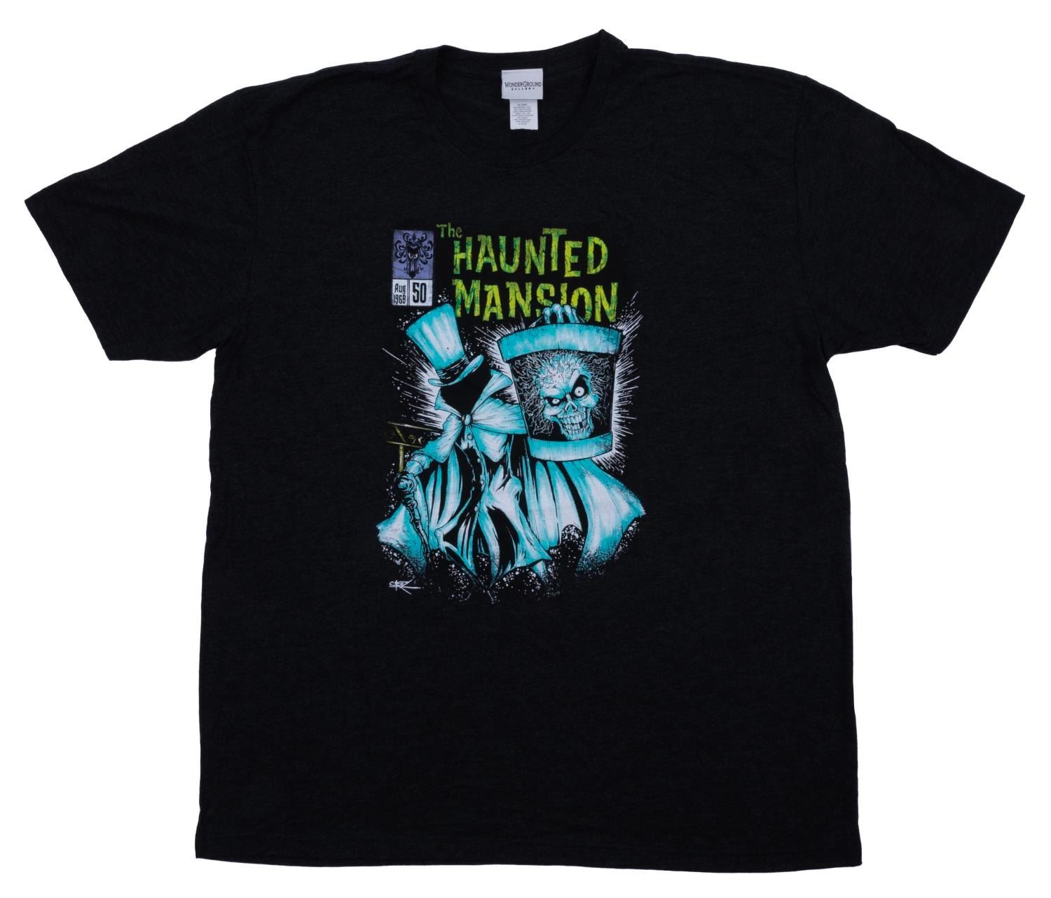 (WonderGround Gallery, 2019) A WonderGround Gallery exclusive The Haunted Mansion #50 Comic t-shirt from the 50th anniversary of the attraction. Measuring a size XL, the shirt is in fine condition.